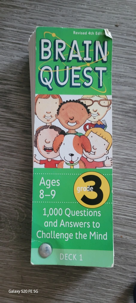 Selling a Brain Quest Deck 1 for Grade 3, perfect for kids aged 8-9! It's the revised 4th edition, packed with 1,000 questions and answers to challenge the mind