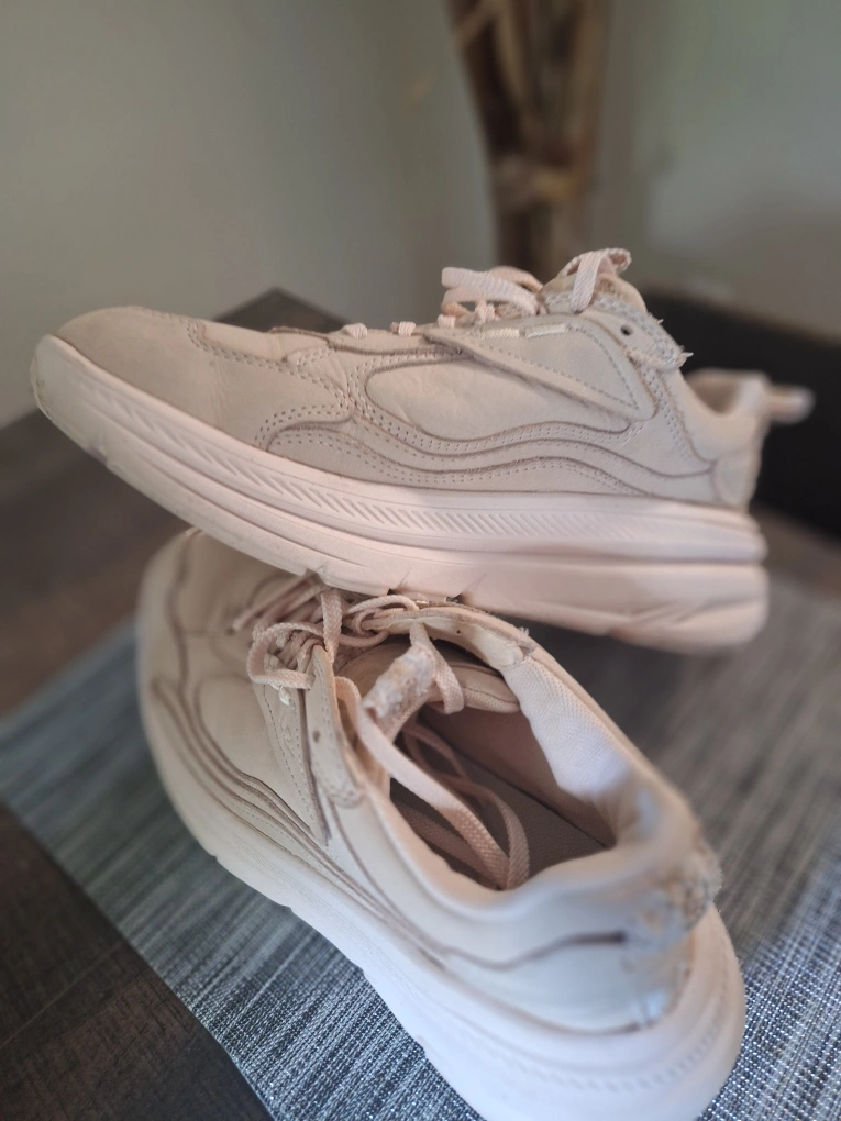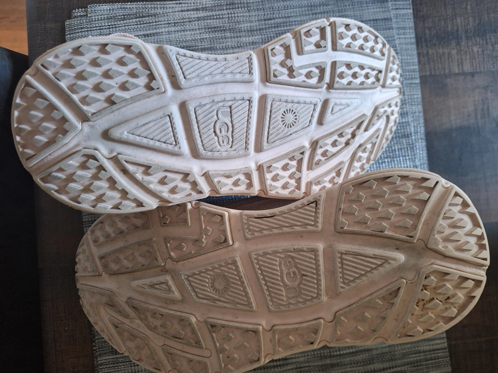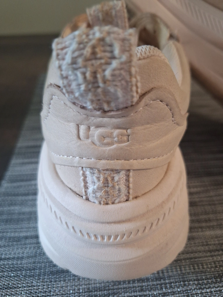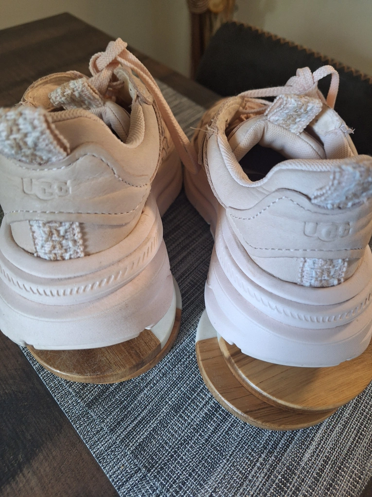 Selling a pair of UGG sneakers in a lovely pink leather! Worn twice on holiday and paid $180 . They're in good condition and ready for a new home. Perfect for adding a touch of style to your everyday look! check out details of shoe in photo.