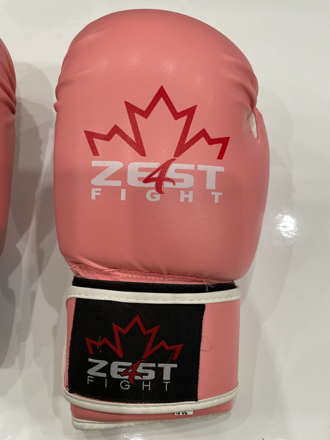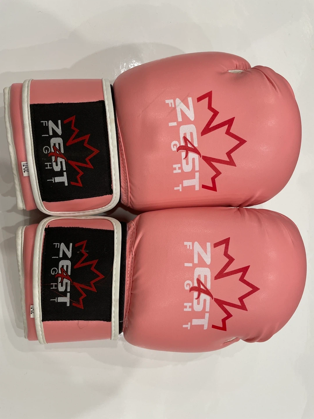 Selling a pair of Zest Fight boxing gloves in pink and white! They're 12oz in size and would be great for training or sparring