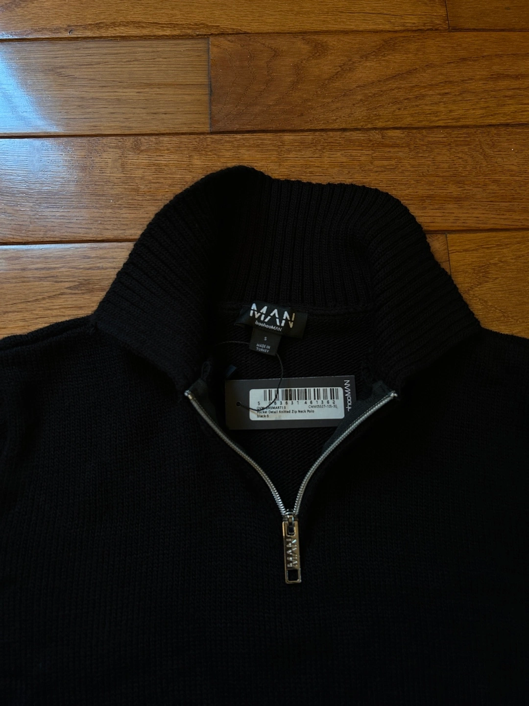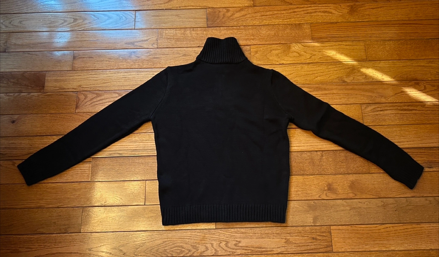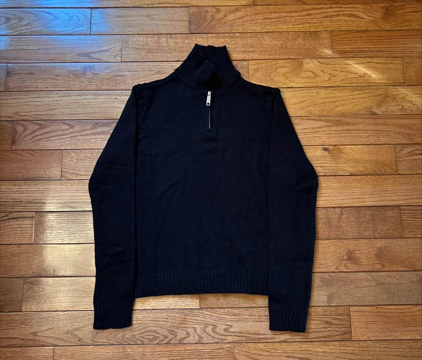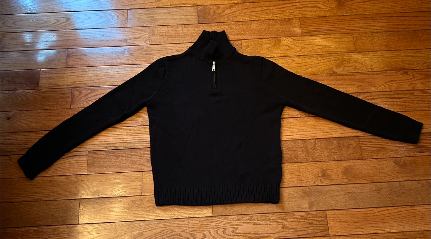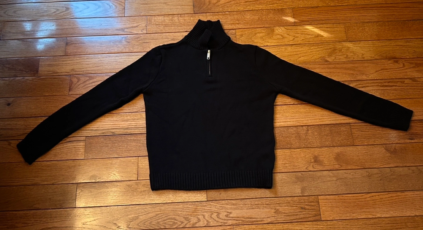 Here's a cozy black knit quarter zip sweater from. It's in great shape and ready for a new home! Perfect for layering during those chilly Canadian evenings