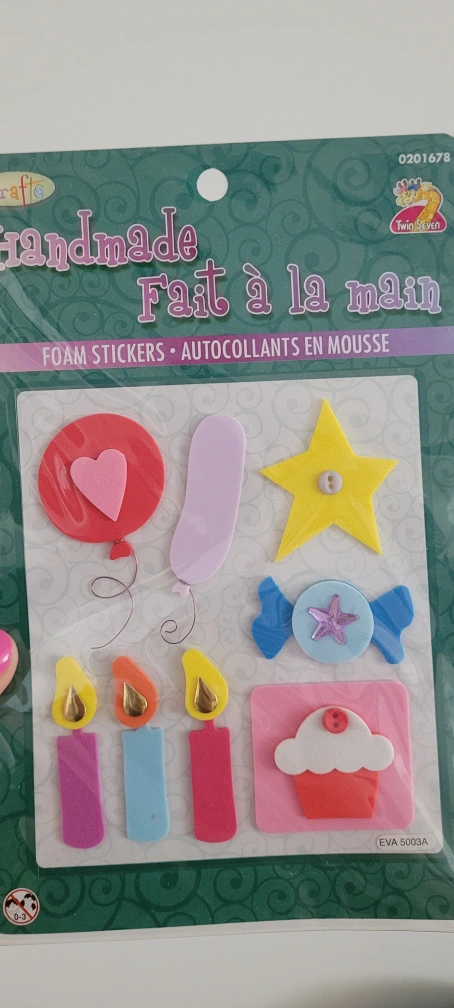 Giving away handmade foam stickers. These stickers are perfect for adding a personal touch to crafts and projects! The pack includes a variety of fun shapes like balloons, stars, candy, and cupcakes. Yonge and Finch area