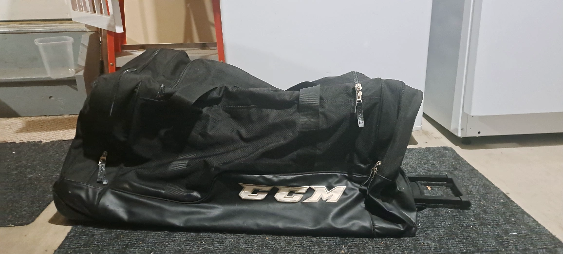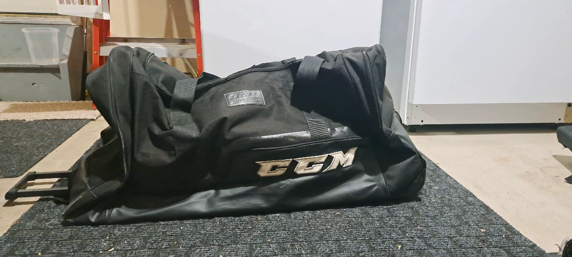 Selling a CCM hockey bag in black. It's got wheels, so it's easy to move around. Great for hockey gear or any other sports equipment! Pick up in Chestermere, Strathmore, or Calgary from pet friendly, smoke-free home.