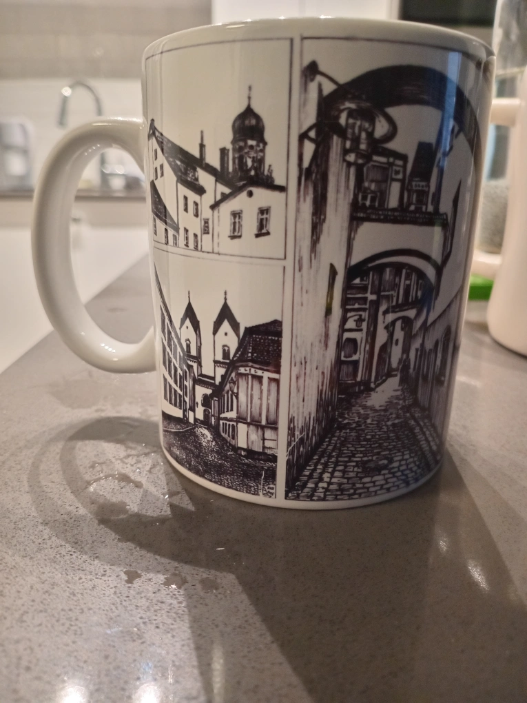 Selling 5 mugs! One has a Passau design, one has a wintery pine and snowflake design, and one says 'Self Made'