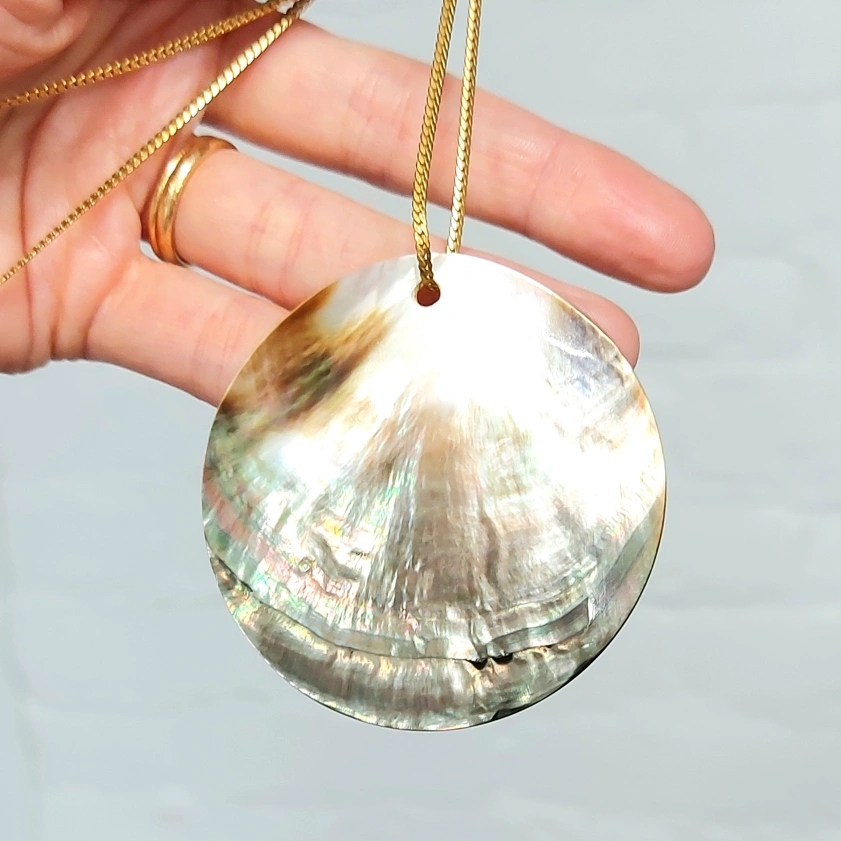 Large sized shell pendant. Originally purchased from Vested Interest in 2005 or 2006. Measures approximately 2.5 inches across. This shell has lots of colorful shine. In excellent condition and was barely worn. This listing is for the shell pendant only and does not include the chain. From a pet free and smoke free home. π©· I have confirmed breast tumors (not currently cancerous). Everything listed needs to GO! Please share this listing ππ©· For mutual safety, I do public meet ups at the North Bay Police Station located at 135 Princess Street West. There is a monitored 'Buy & Sell Exchange Zone' shared with the visitor parking lot at the front of the station. Listed at $1. Trades acceptedβ I would be looking for a $1 trade value for an ISO item or something of interest from your profile. ISO items: shampoo, nail polish, body mist/fragrance, 100% cotton sewing thread, 100% cotton denim, note books. Check out my other listings and thanks for looking!
