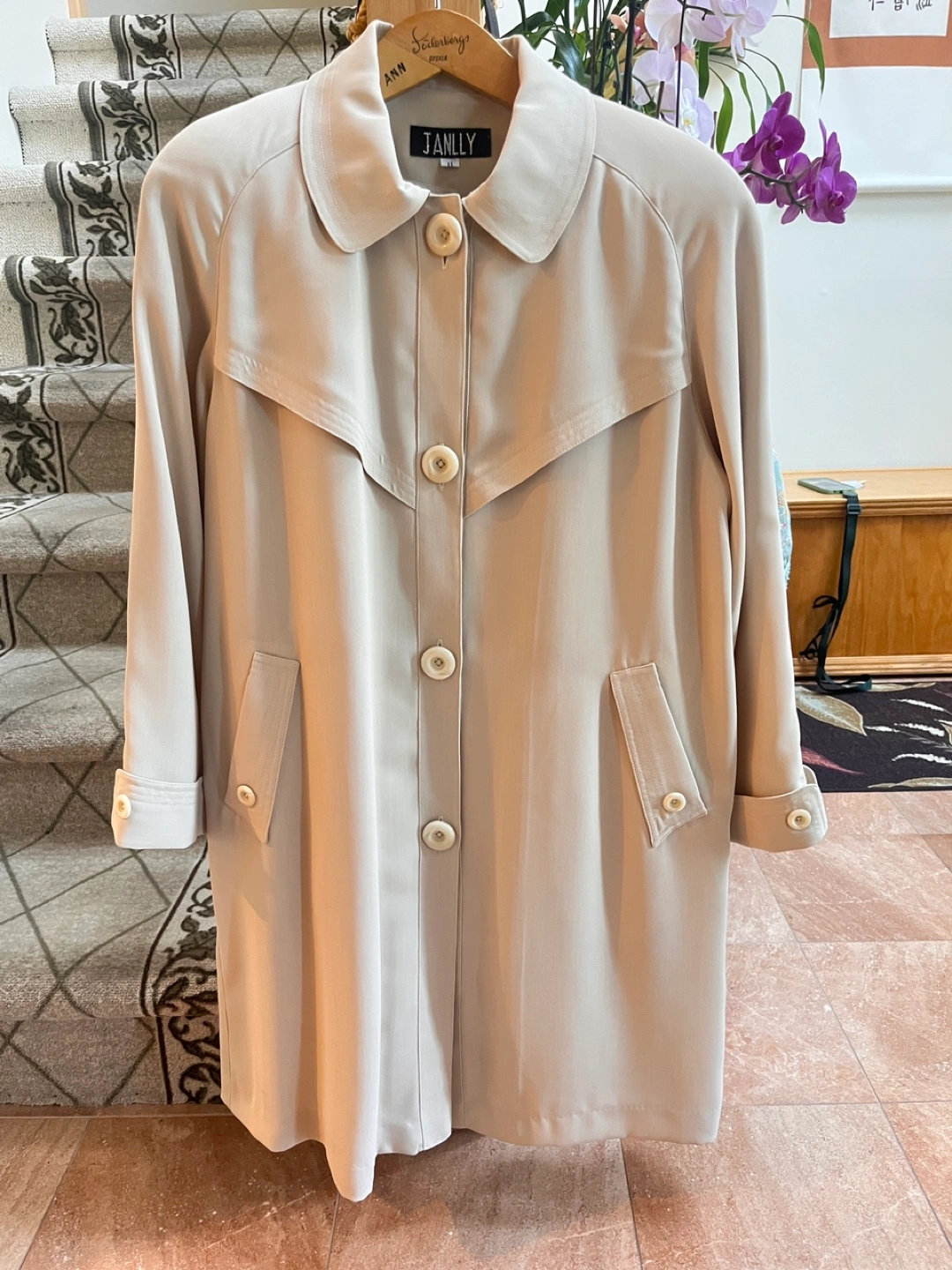 Selling a Janlly trench coat, size M. It's a lovely beige colour with a unique leopard print lining can be removed. Perfect for those cooler days!