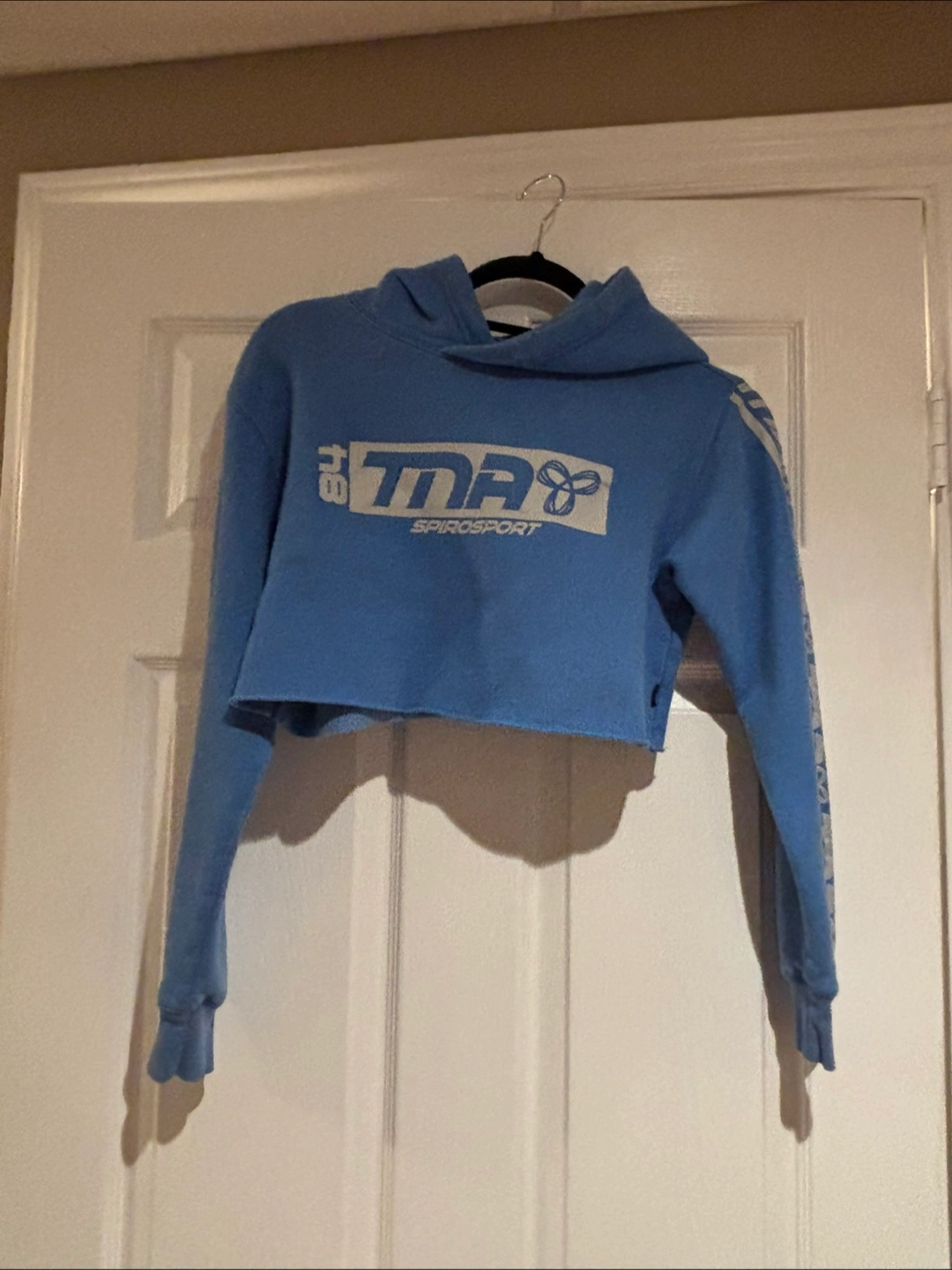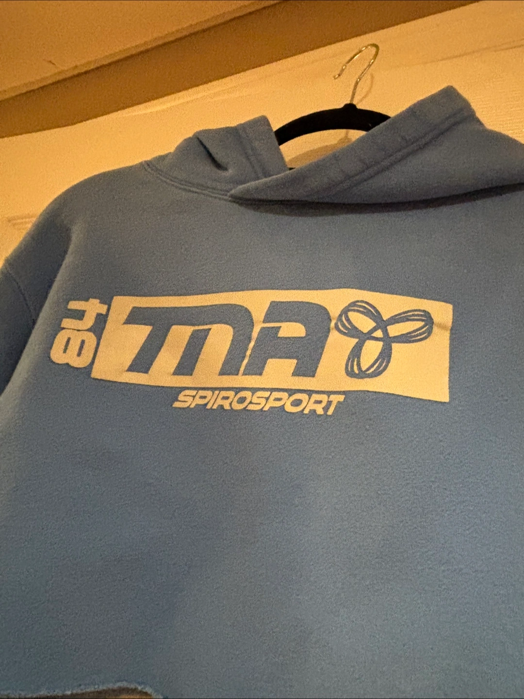 Cropped hoodie in a lovely blue colour! The cropped style gives it a trendy look, and the Spirosport logo adds a sporty touch