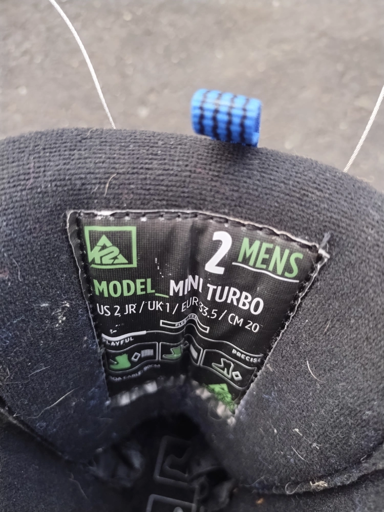 Selling a pair of K2 Mini Turbo snowboard boots. They are size 2 mens. Great for hitting the slopes! Why pay more? It's perfect for practicing for kids beginners.