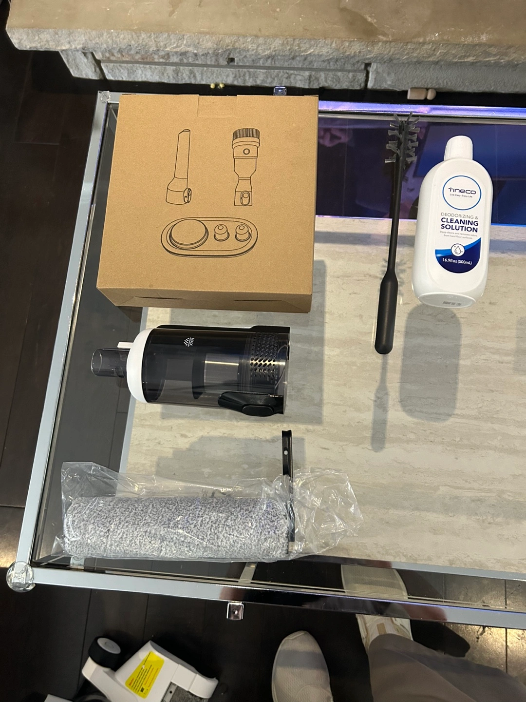 Gently used, some of the parts have never been used. The whole device has been taken apart and cleaned. There is still some of the original floor cleaner in the bottle. There is an extra roller for the vacuum. There is an extra filter