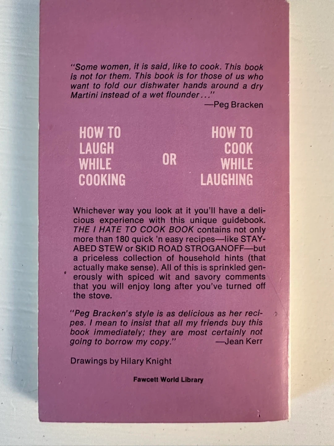 Selling "The I Hate to Cook Book" by Peg Bracken! This book is a great bestseller, filled with quick and easy recipes that are simple to use and wonderfully funny.