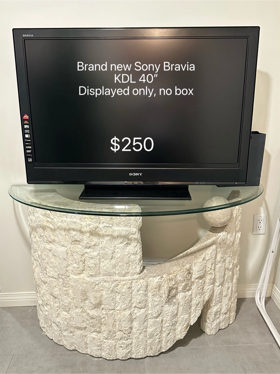 Selling a brand new Sony Bravia KDL 40" TV. It has only been displayed and does not include the box. You pick it up with $250 cash.