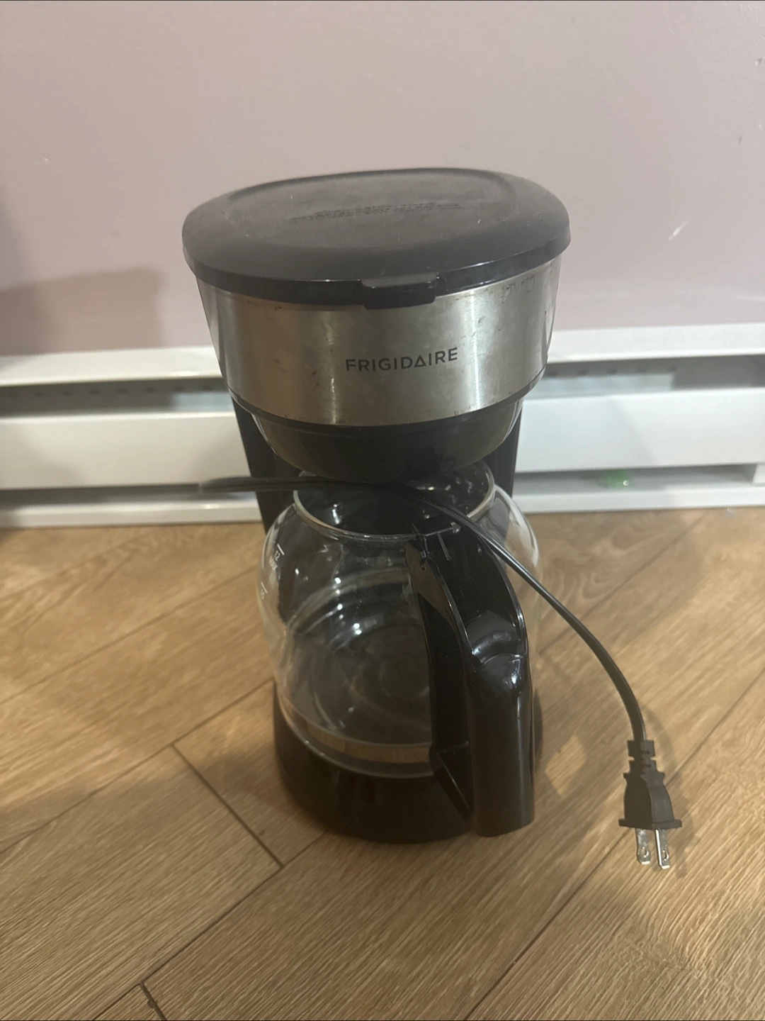 Selling a used Frigidaire coffee maker. It's in good working condition and ready to brew your favourite coffee! Perfect for a small kitchen or office space, selling it because I bought a new machine :)