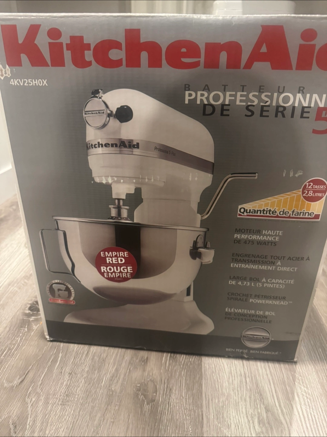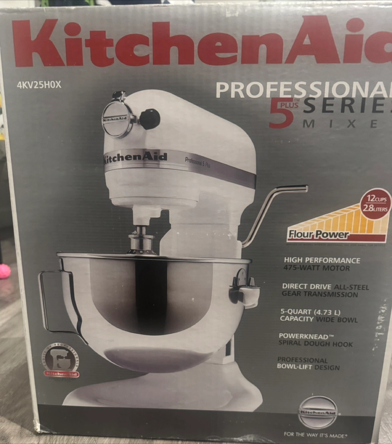Selling a KitchenAid Professional 5™ Plus stand mixer! This high-performance mixer features a 475-watt motor and a 5-quart (4.73 L) capacity wide bowl. It also has a PowerKnead™ spiral dough hook and a professional bowl-lift design. The box is included