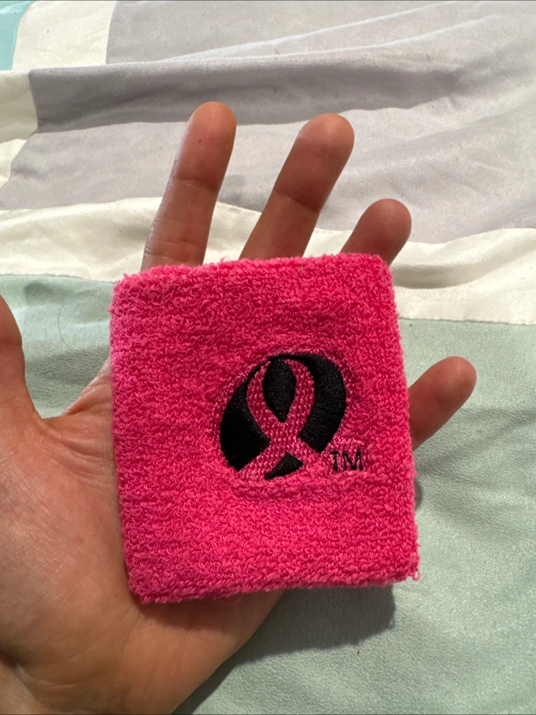 Selling a pink Pearl Izumi wristband with Run for Breast Cancer Awareness logo. It's in great shape and perfect for keeping sweat out of your eyes during workouts or sports! It features the Pearl Izumi coloured logo.