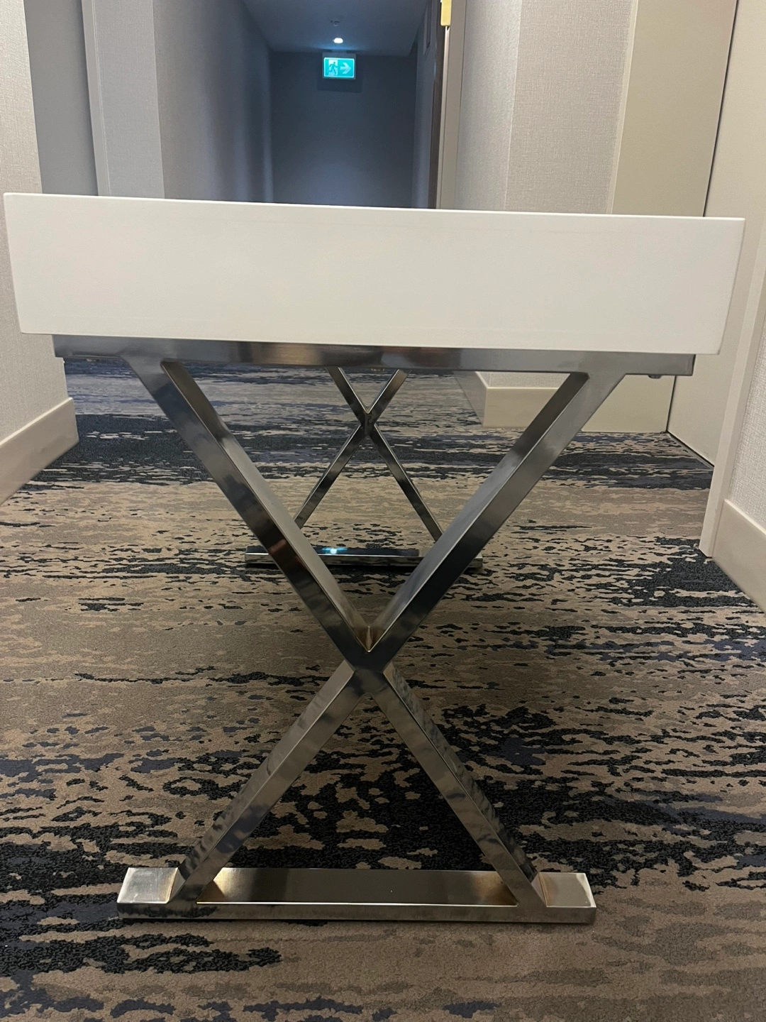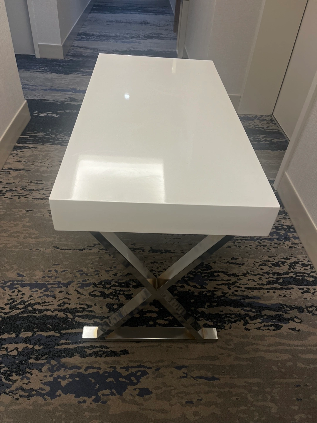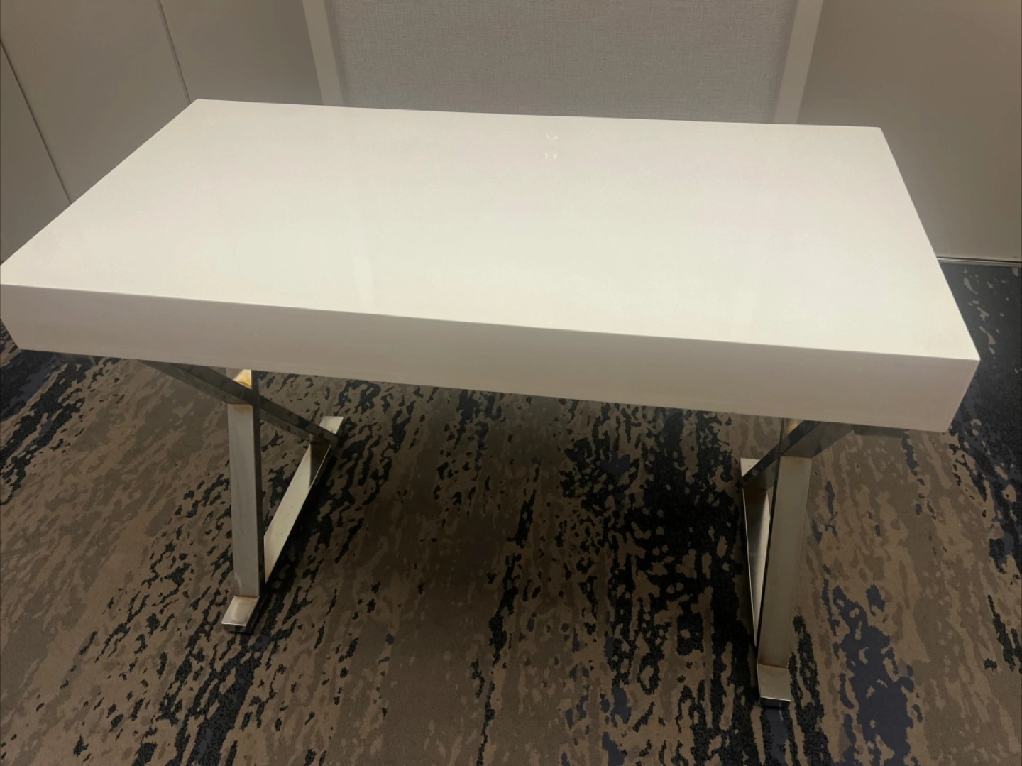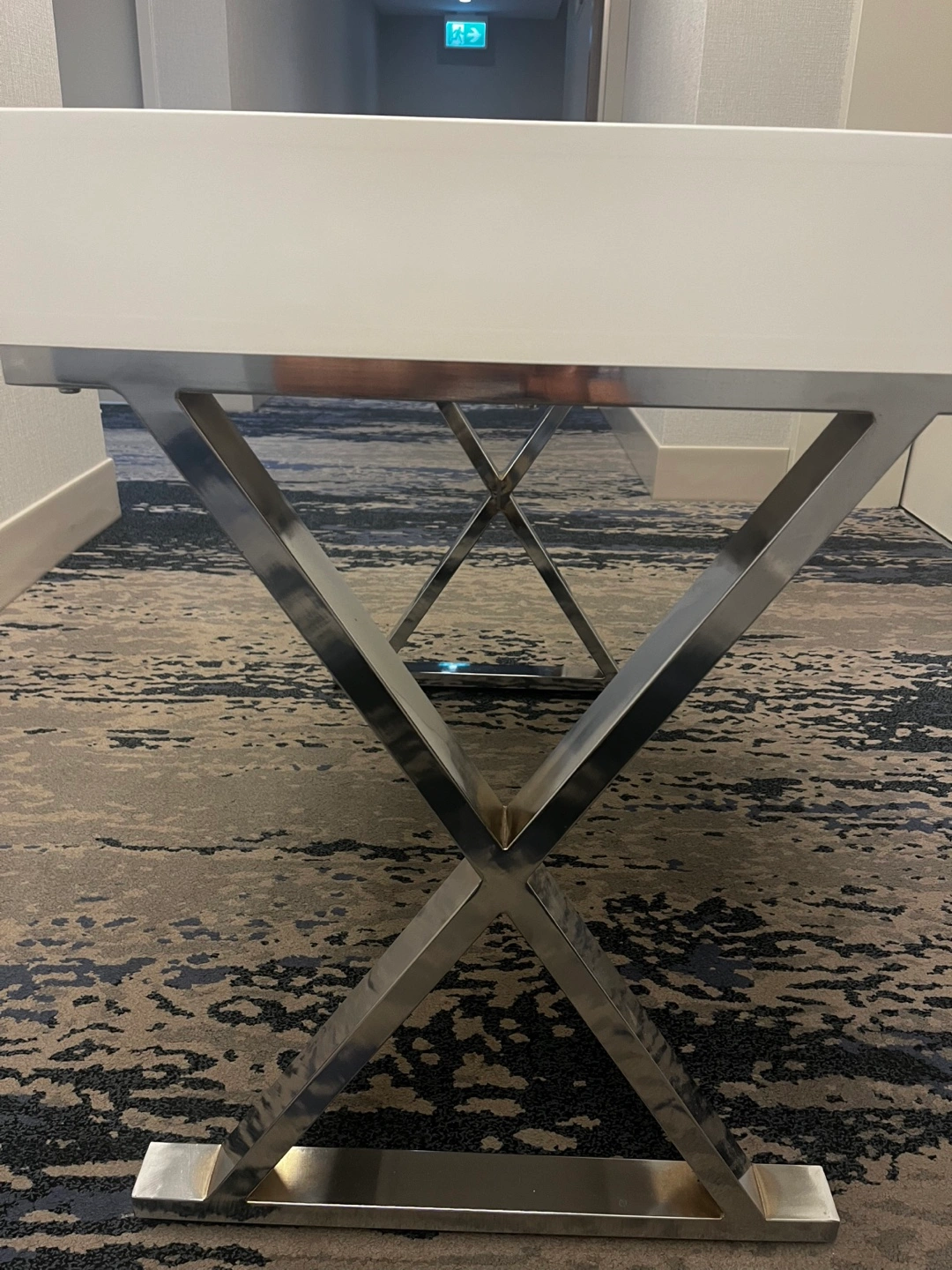 Dining Table with 6 Chairs - Marble Top, White Leather