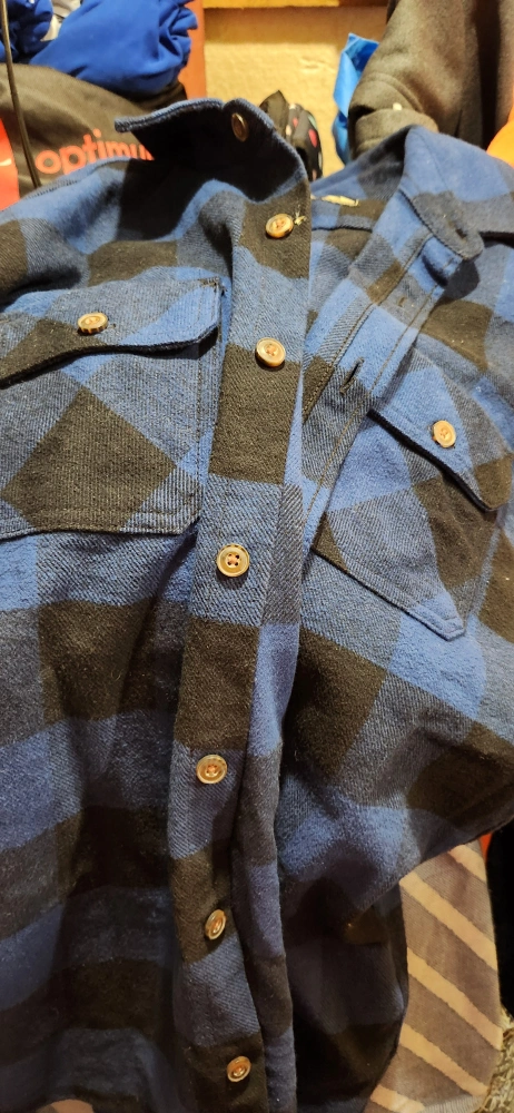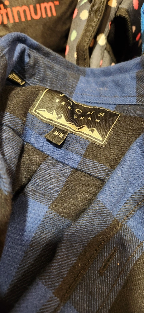 Here's a Jachs New York flannel shirt in size M/M. It's a stylish blue and black checkered pattern. Perfect for layering or wearing on its own!