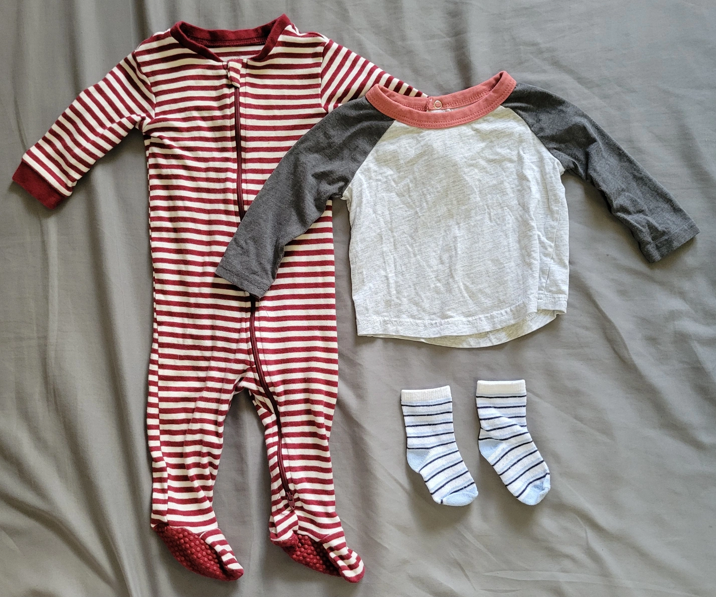 Includes: - 1 onesie - 1 shirt - 1 pair of socks ************************************************* **PICK UP ONLY** Cash or etransfer only upon you seeing the product in person first. No money is expected beforehand.