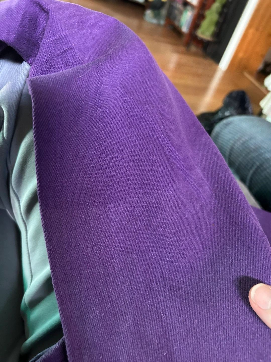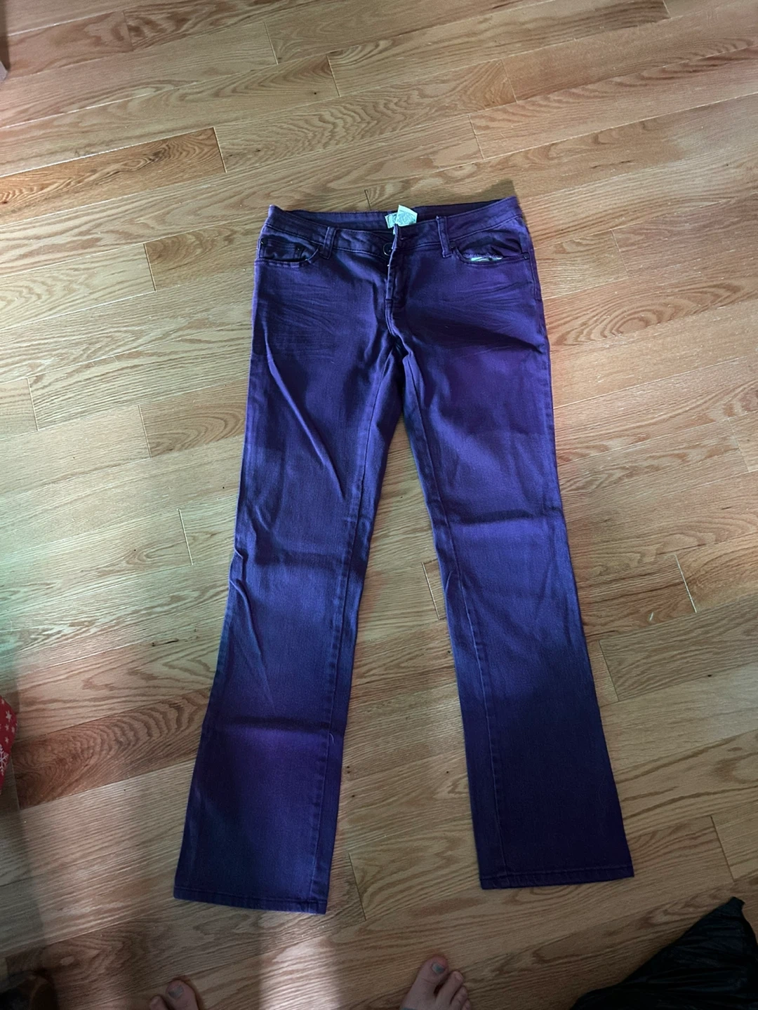 Show allI'm selling a pair of purple jeans. In the second picture you can see that they are faded part way down the legs