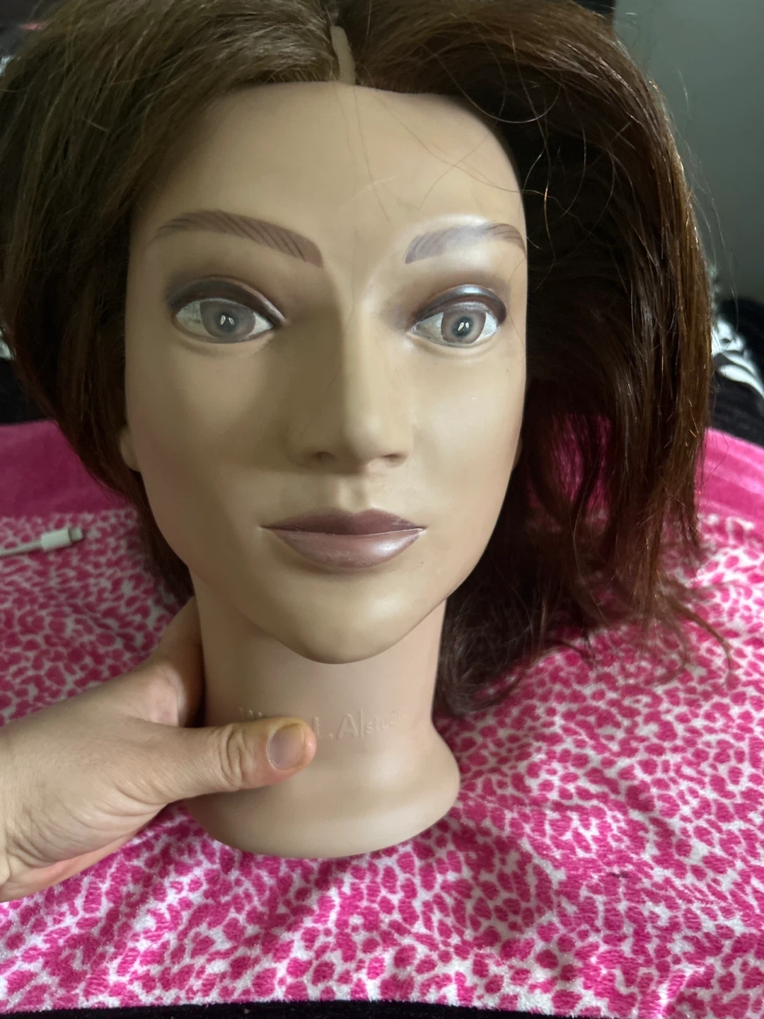 Selling a cosmetology mannequin head. Great for practicing hair styling techniques. It has brown hair.