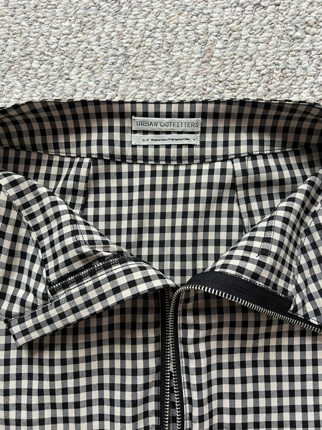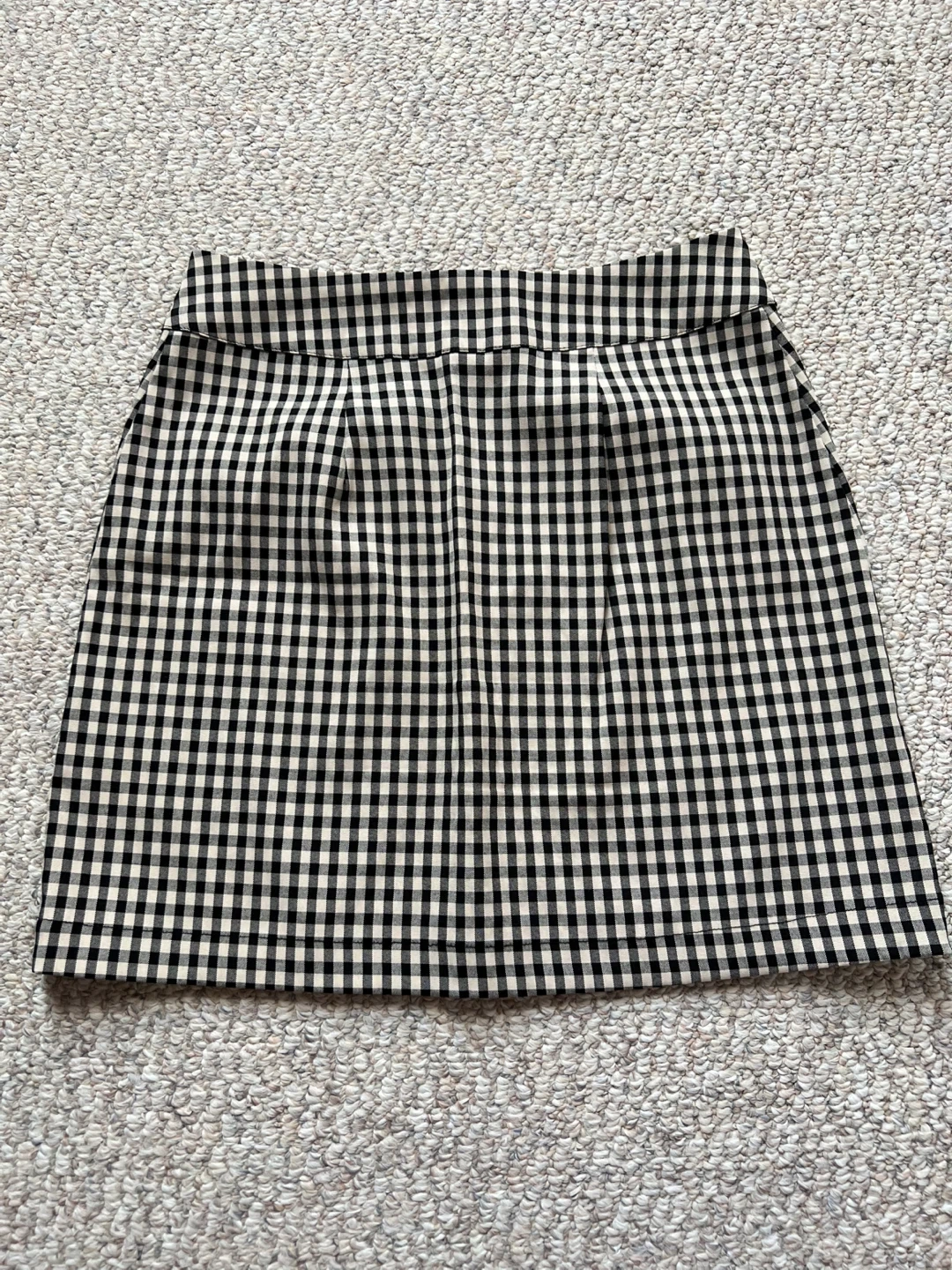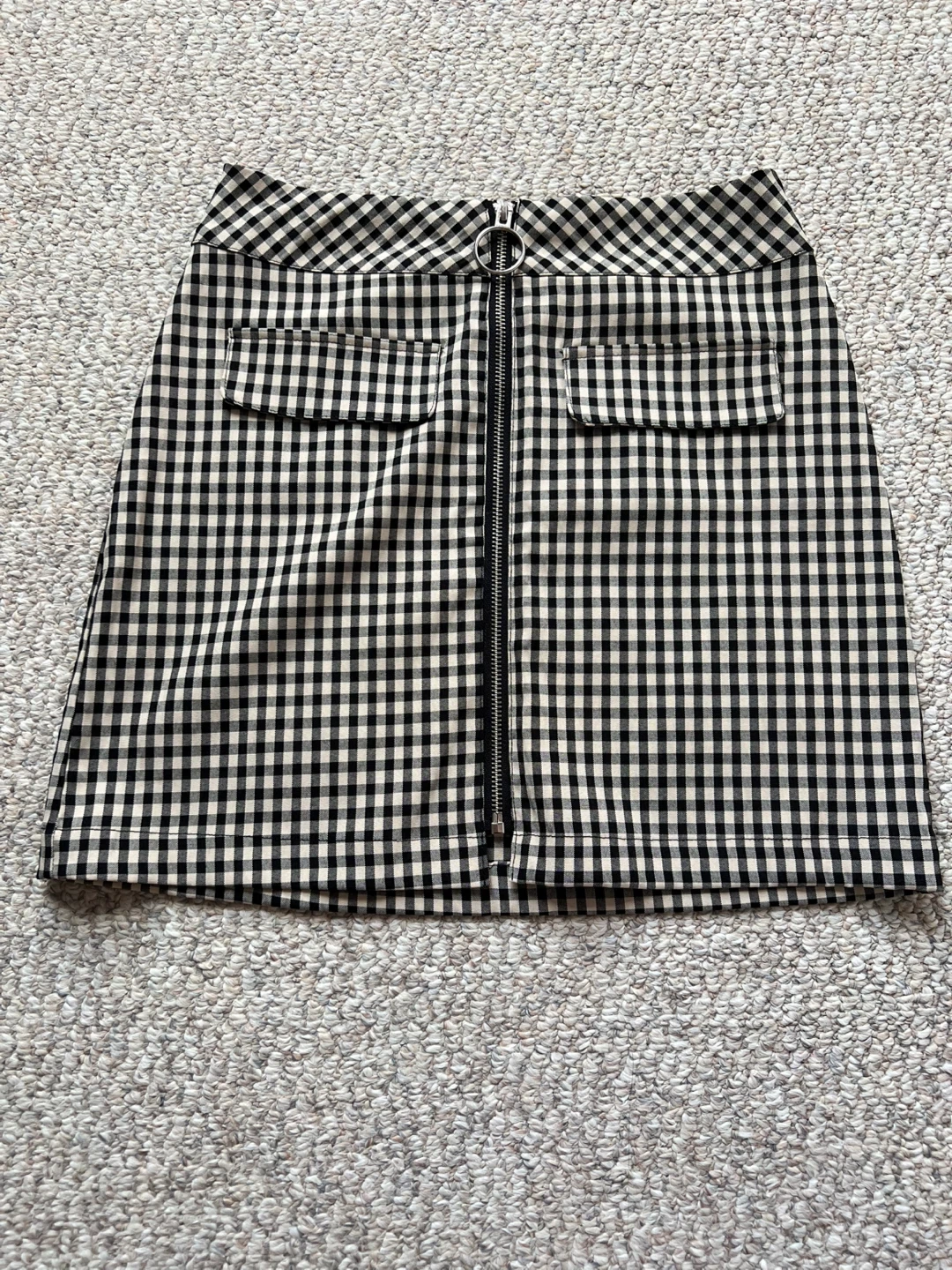 Selling an adorable Urban Outfitters mini skirt! It features a black and white gingham pattern, a front zipper, and cute front pockets. It's a size small and in great condition, ready for a new home! W x L 70x 40