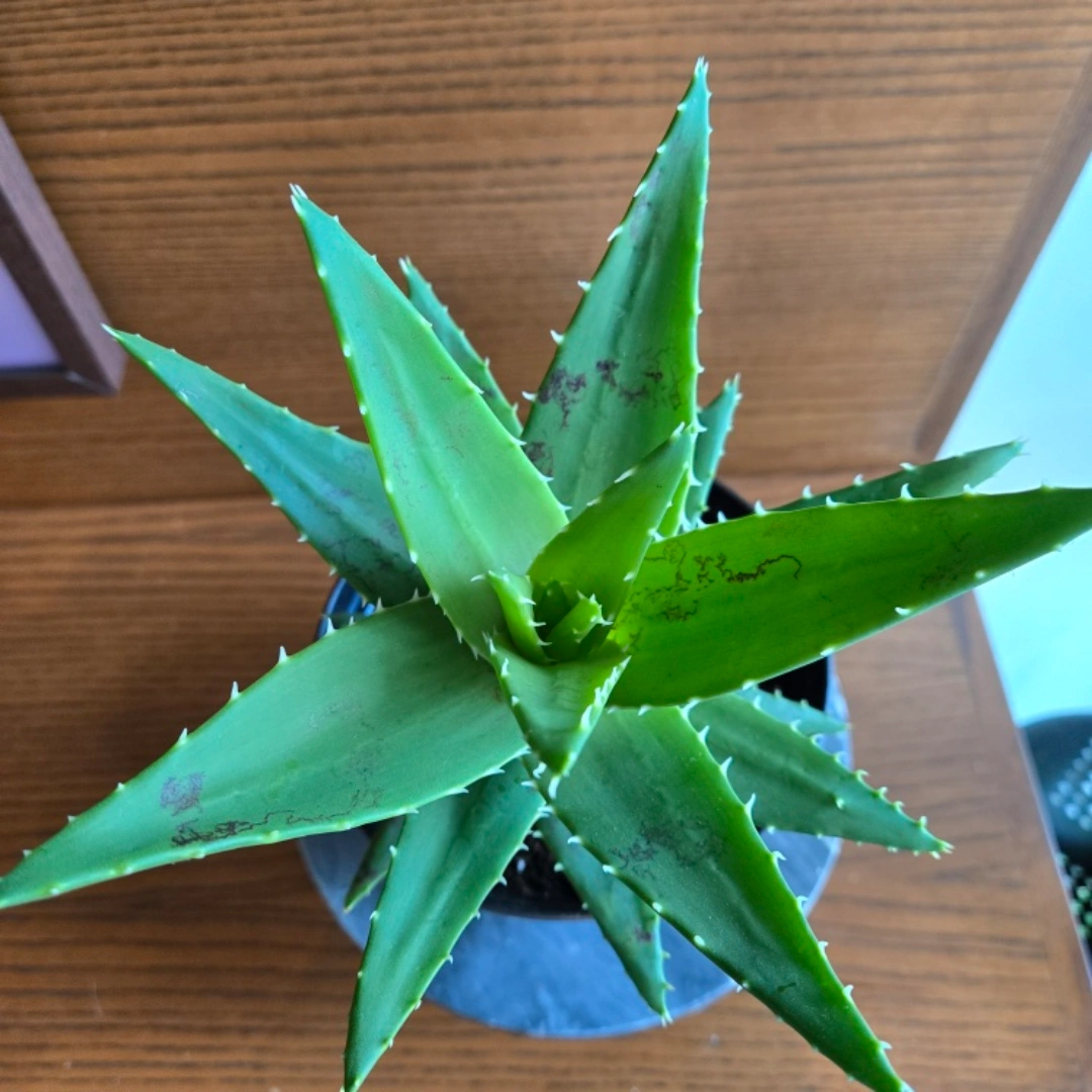 A healthy aloe plant potted in a simple black pot with drainage! It's a great addition to any home and easy to care for. Perfect for adding a touch of greenery to your space! It's also the cute variety that remains compact, perfect for small spaces! Pickup with cash only please ๐