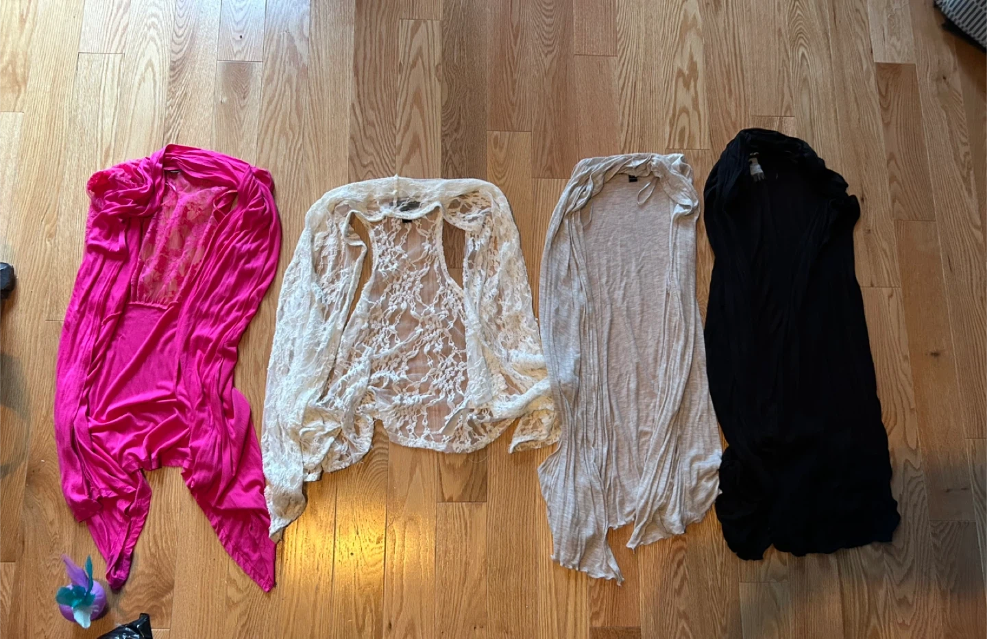 Selling a variety of cardigans and cover-ups! There's a mix of colours and styles, perfect for layering or adding a little something extra to your outfit.