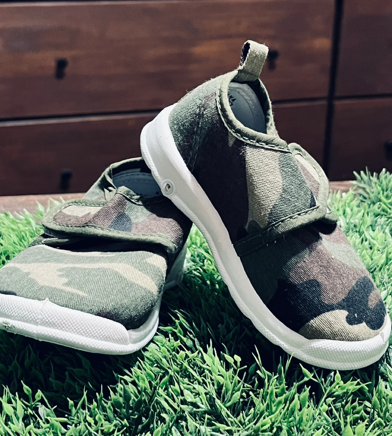 New camouflage squeaky shoes (they squeak as baby walks), size 6 boys. Velcro closure. $10 Located in Mayland Heights, Calgary (NE) First come, first served No holds without e-deposit No delivery Prices are firm Pet friendly home If listing is up, item available