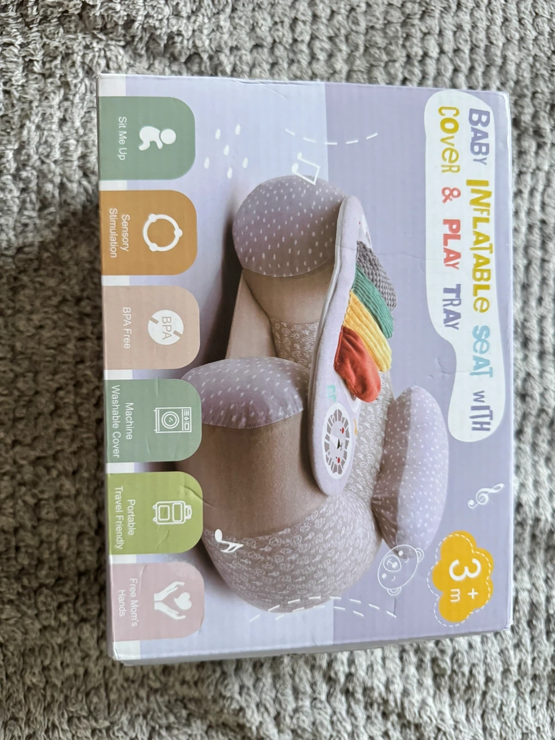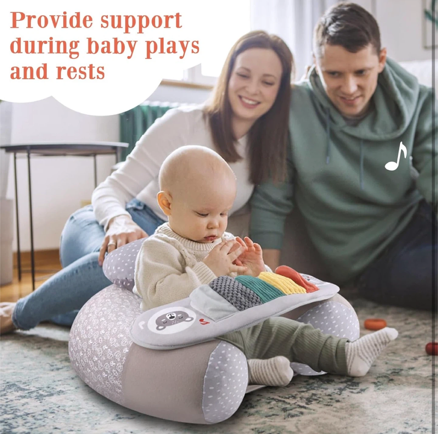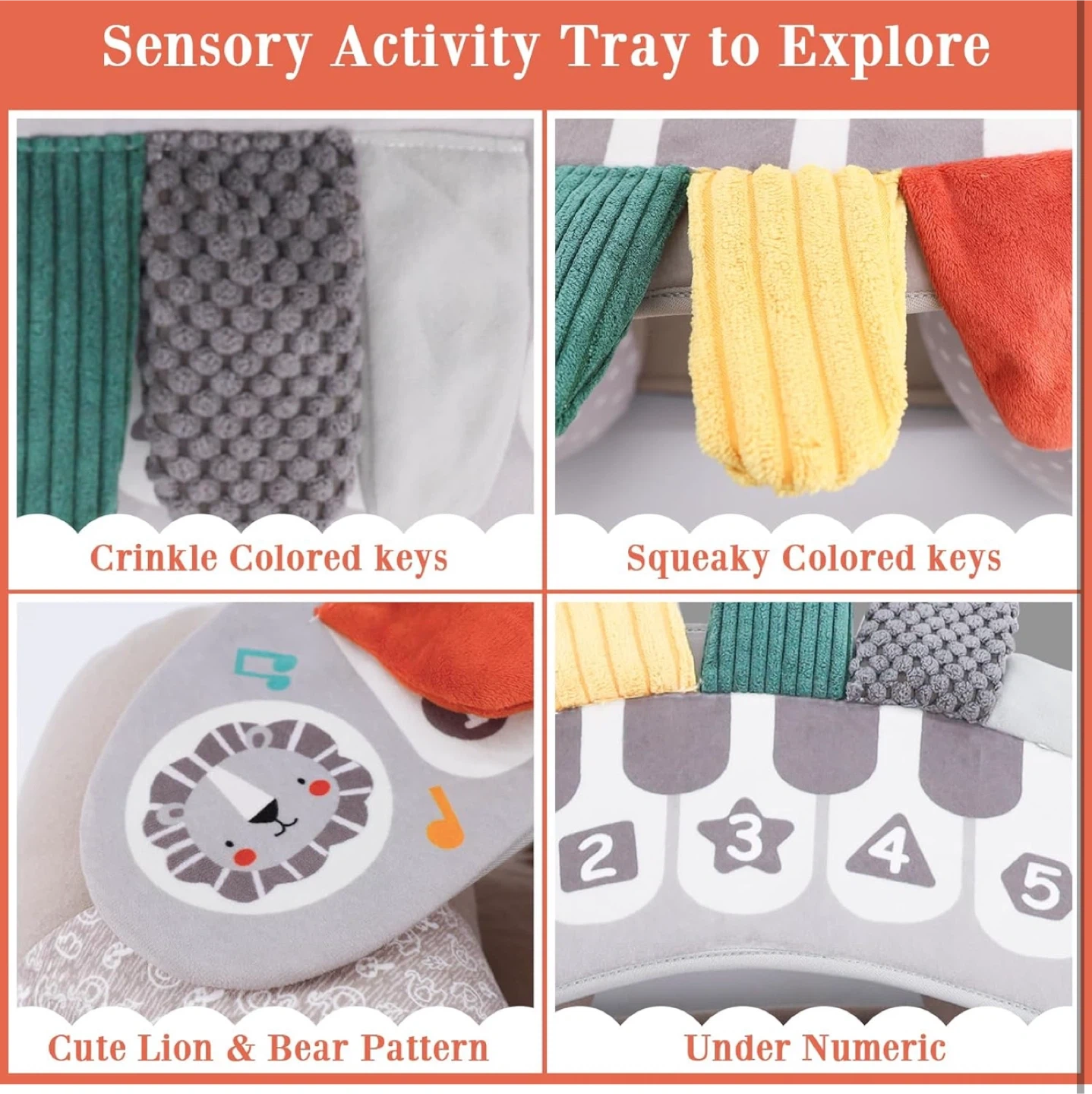 This baby inflatable seat provides great support for your little one while they play and rest! It features a bionic design that wraps around, protecting baby's spine and providing strong support. It also comes with a keyboard tray for multi-sensory stimulation to promote baby growth. Perfect for ages 3 months and up!