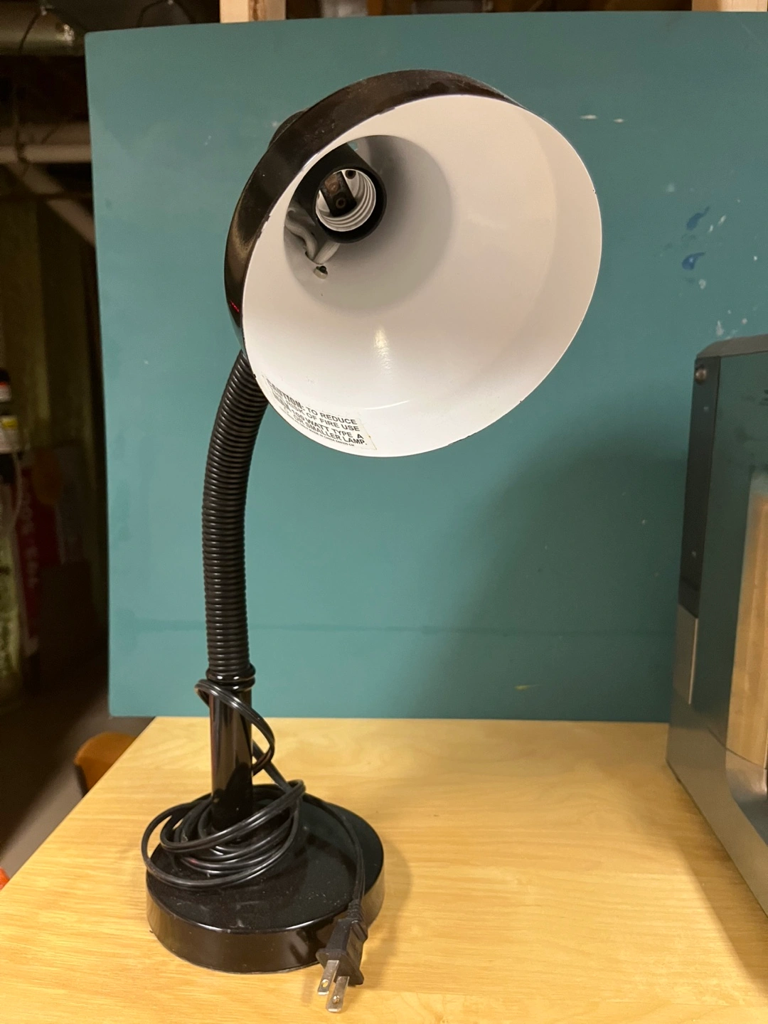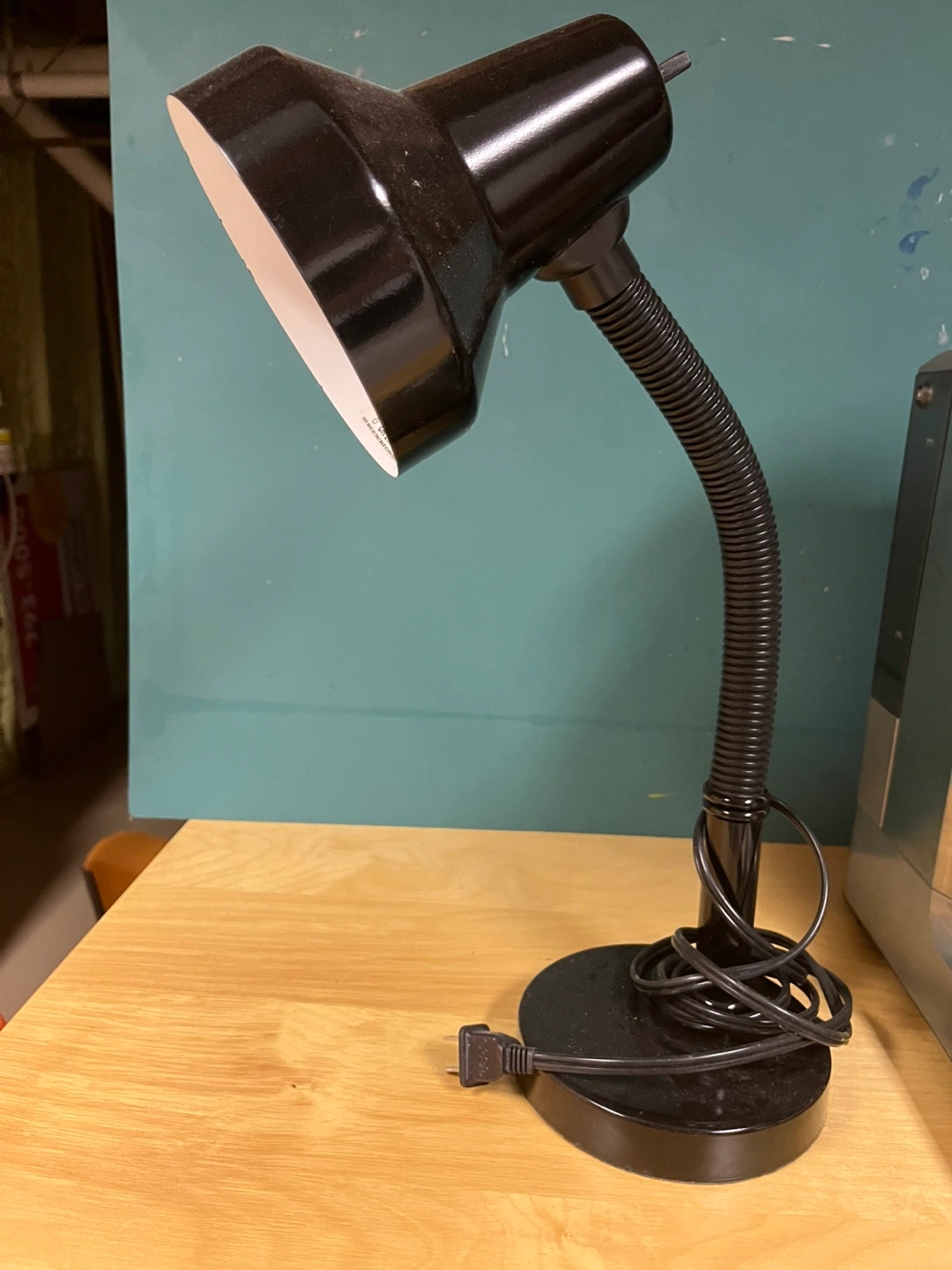 Here's a black desk lamp, perfect for a home office or study space! It's in great shape and ready to brighten up your day