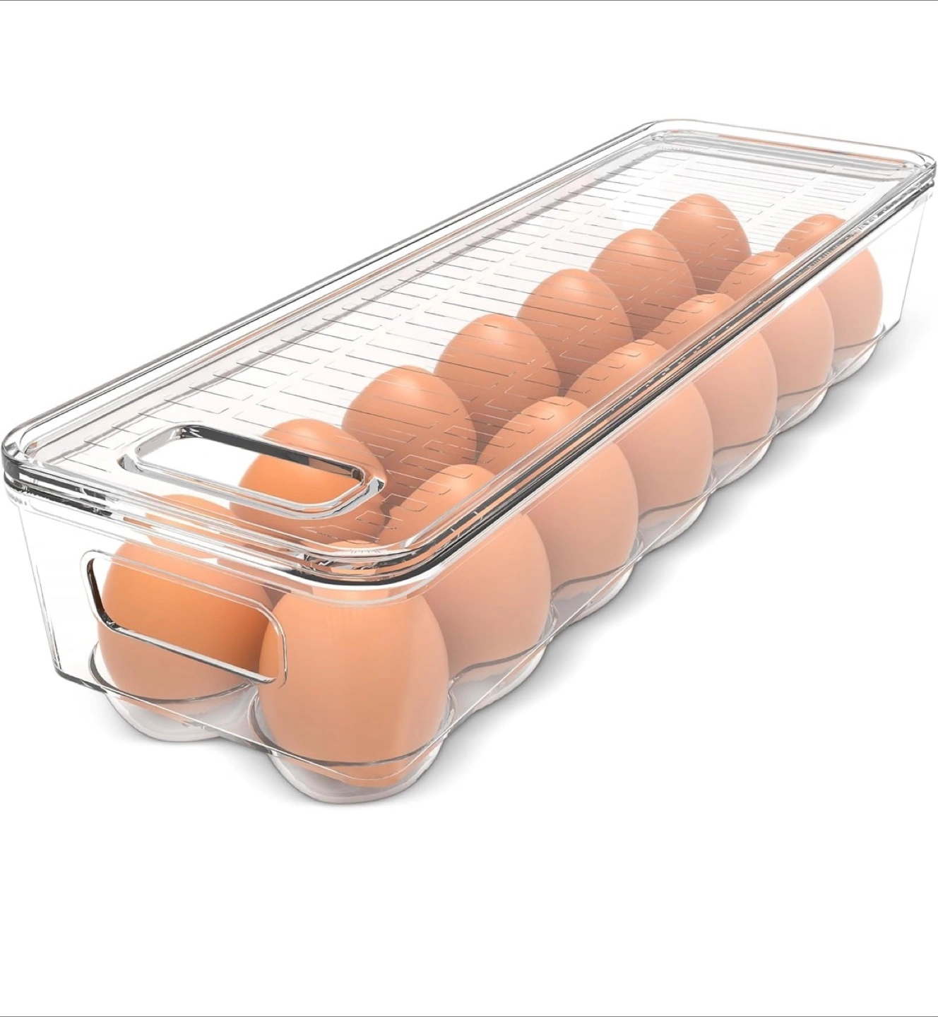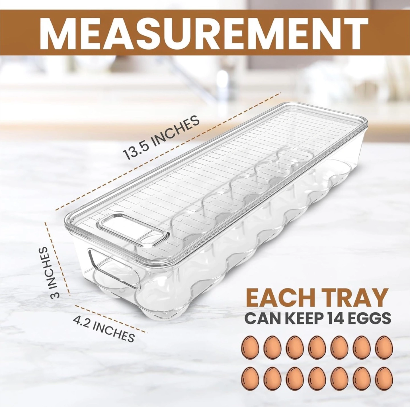^*MOVING SALE! ^**Must Go ASAP - Pick-up in Downtown Calgary ONLY! Keep your eggs fresh and organized with this clear plastic egg storage container! It can hold up to 14 eggs. The container measures 13.5 inches in length, 4.2 inches in width, and 3 inches in height. It's perfect for keeping your fridge tidy and your eggs easily accessible.