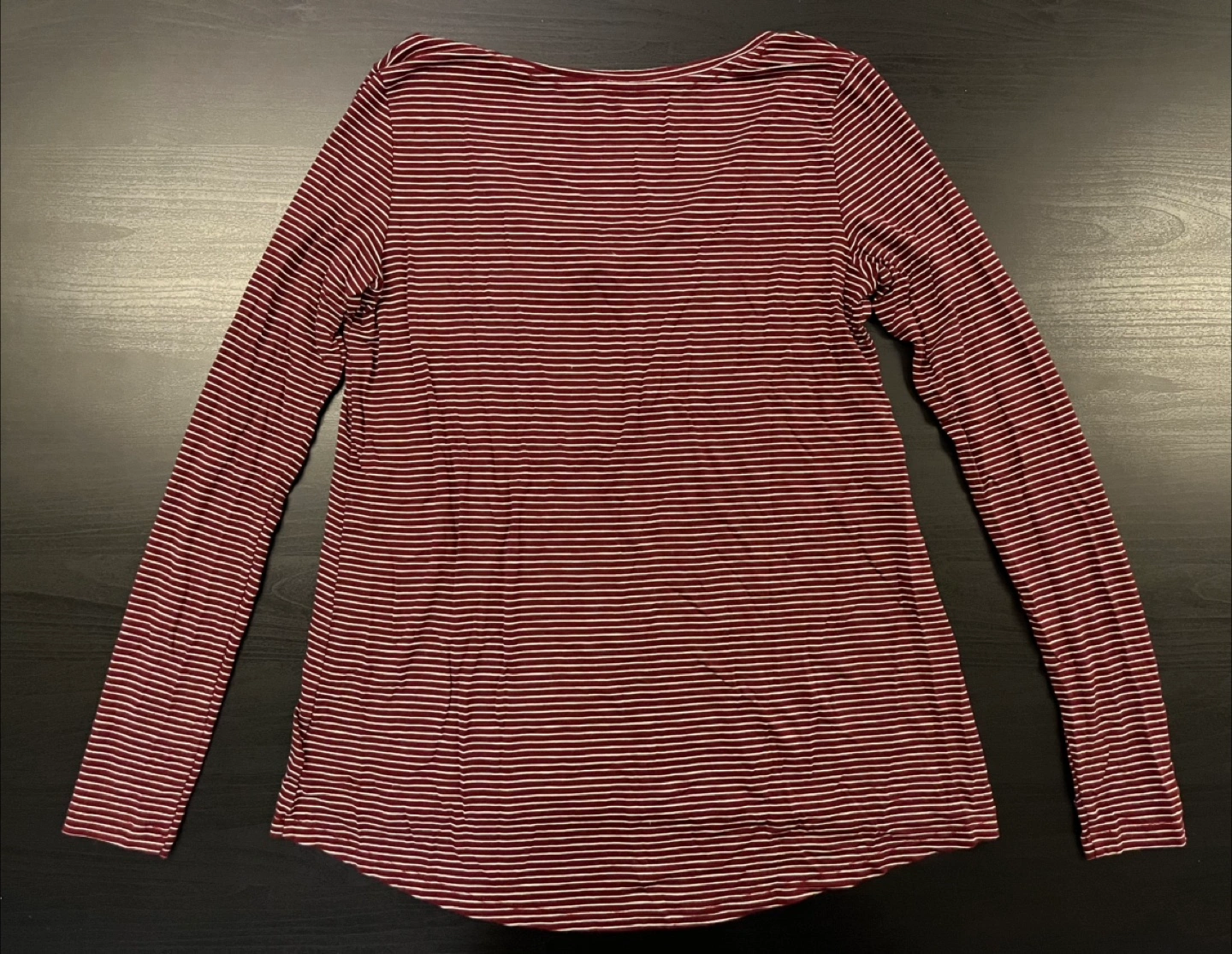 Comfy American Eagle long sleeve top, it features a burgundy and white striped pattern and a flattering V-neck. Size is XS (fits big) and it's in great condition Selling for $5
