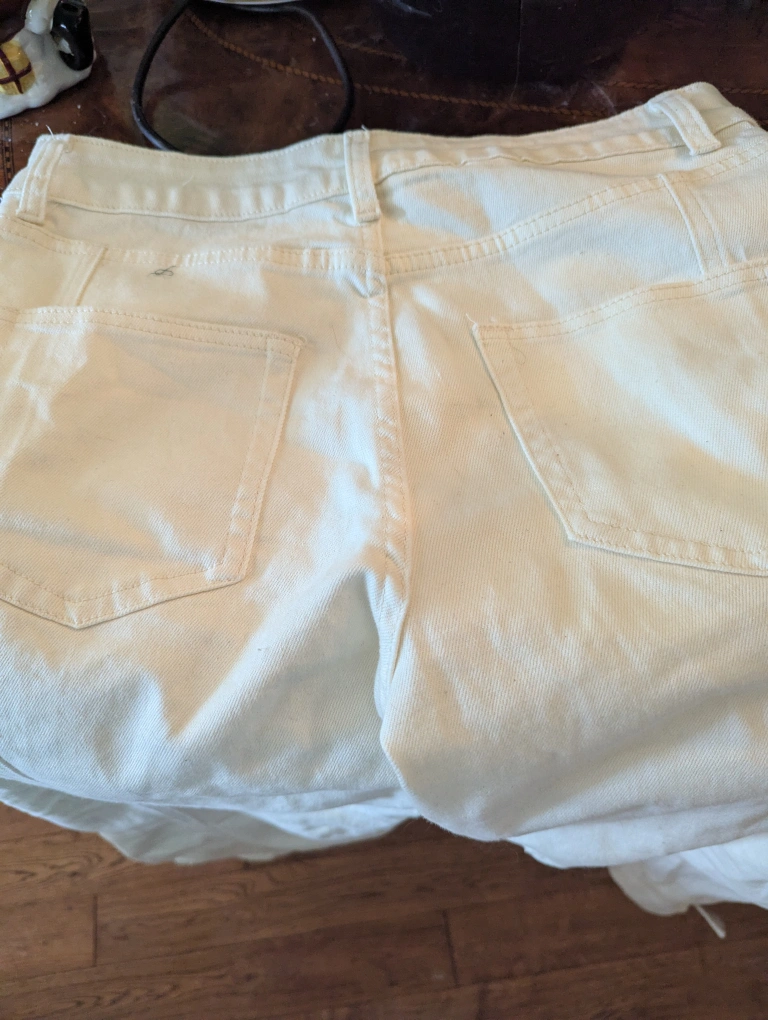 These are a pair of cream-coloured cargo pants from Hot Topic. They have a lot of pockets and a drawstring at the bottom! They are brand new with tags. paid $80 plus tax selling for $50