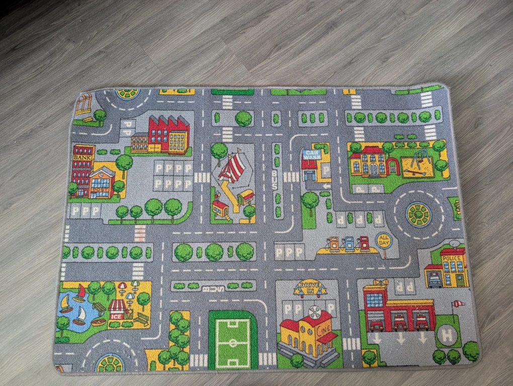 This fun cityscape play mat rug is perfect for kids! It features a detailed design with roads, buildings, and other city elements. Great for imaginative play and adding a touch of fun to any room