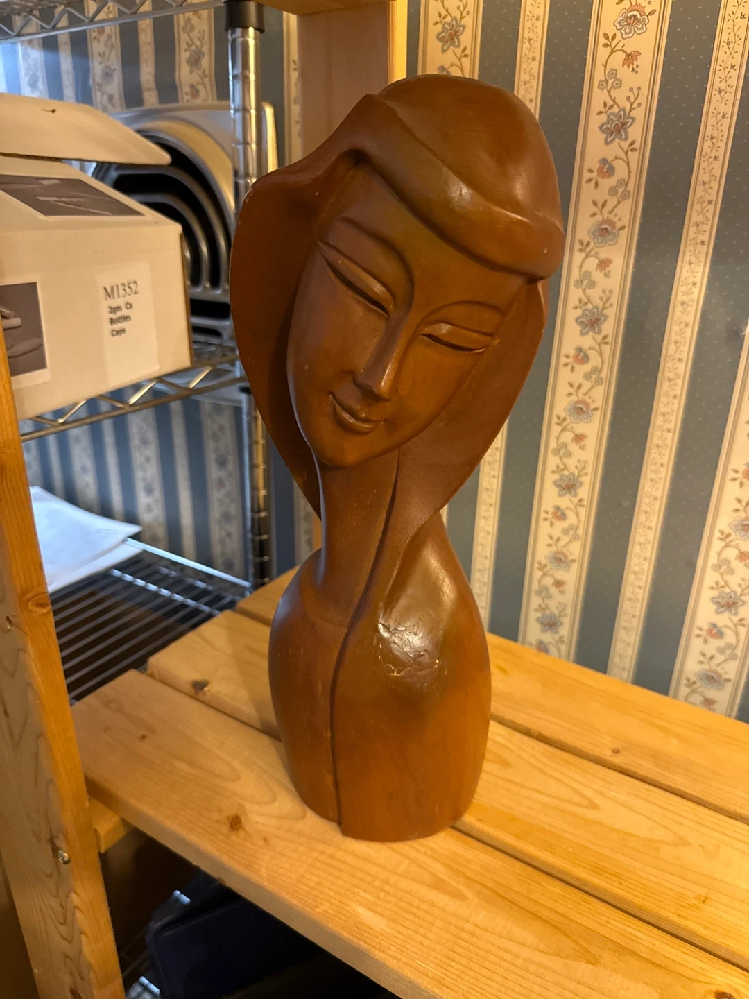unique wooden sculpture of a woman's bust. It's a beautiful piece that would add character to any room. The sculpture is in great condition and ready for a new home