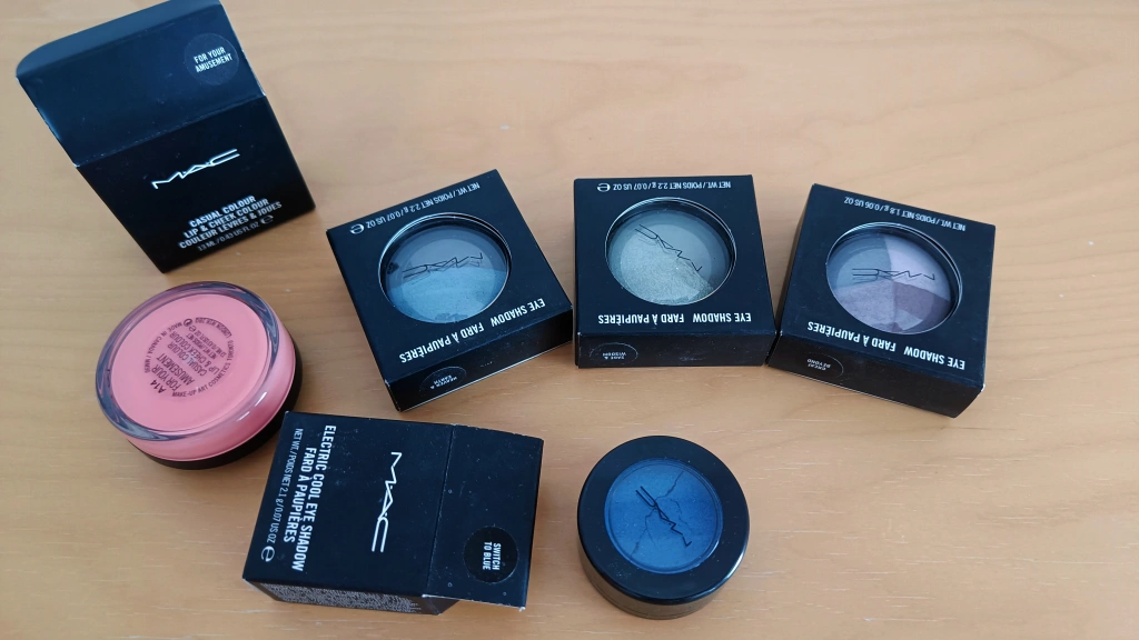 Selling a collection of MAC makeup items! Includes: - Eye Shadows: Various shades available - Casual Colour Lip & Cheek Colour in 'For Your Amusement' - Electric Cool Eye Shadow in 'Switch to Blue' (cracked) - Heaven & Earth - Sage & Wisdom - Great beyond All items are new and in original packaging
