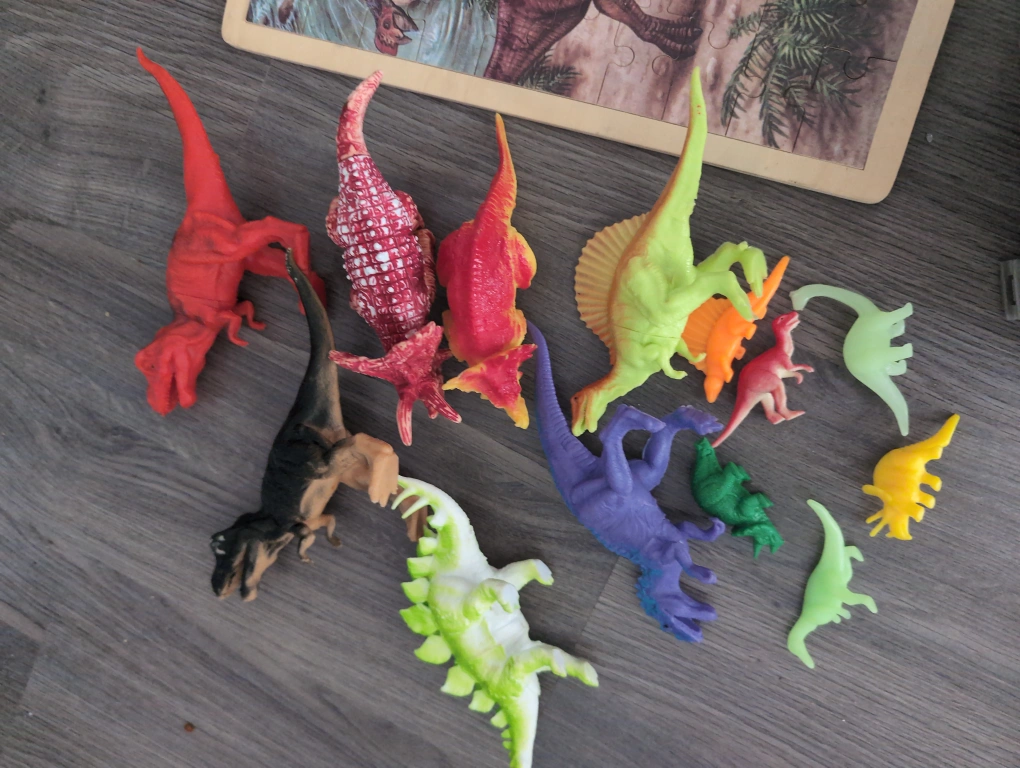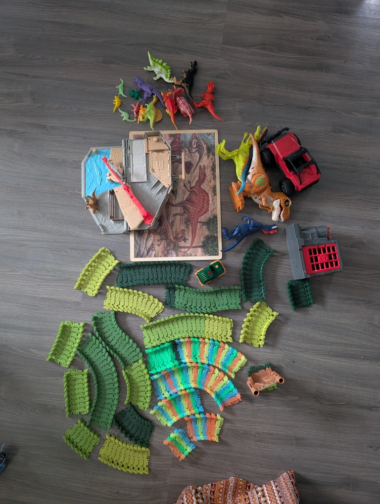 Selling a dinosaur toy set that includes a variety of dinosaurs, a track system, and other accessories. It looks like a fun and engaging set for kids who love dinosaurs and creative play! Great for hours of entertainment.