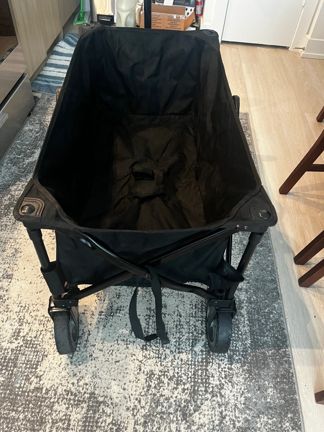 Selling a Woods folding wagon in black. It's in great condition and ready for your next adventure or trip to the park! Easy to fold and store, this wagon is super handy for carrying all sorts of things