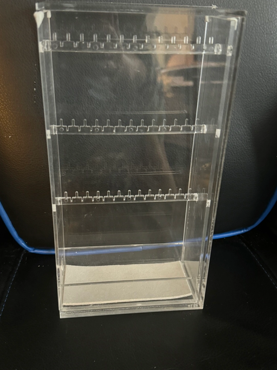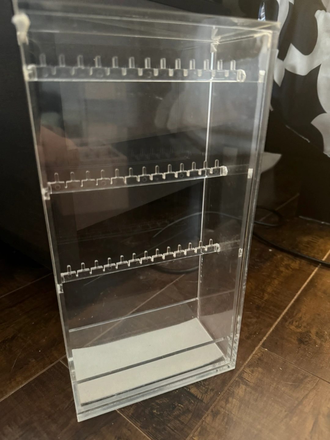 MUJI acrylic earring display case! It's perfect for organizing and showcasing your earrings. It has multiple tiers to hold a lot of earrings. It's in great condition and ready for a new home. Meet at York Mills & Don Mills on weekday work time, or near Pacific Mall after work time.