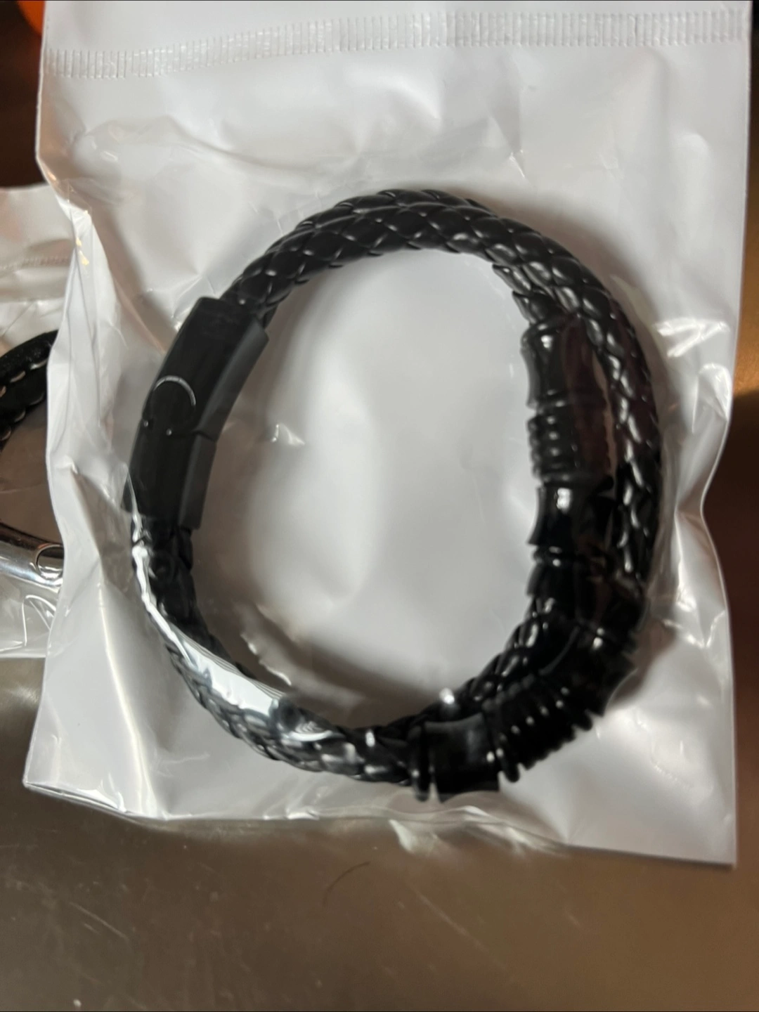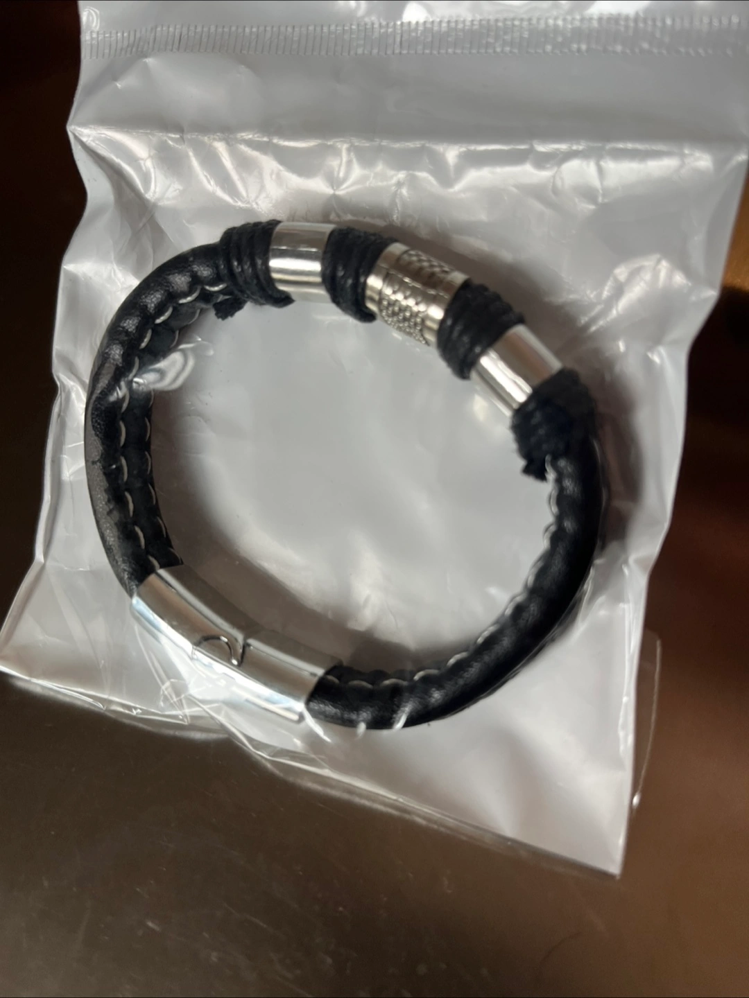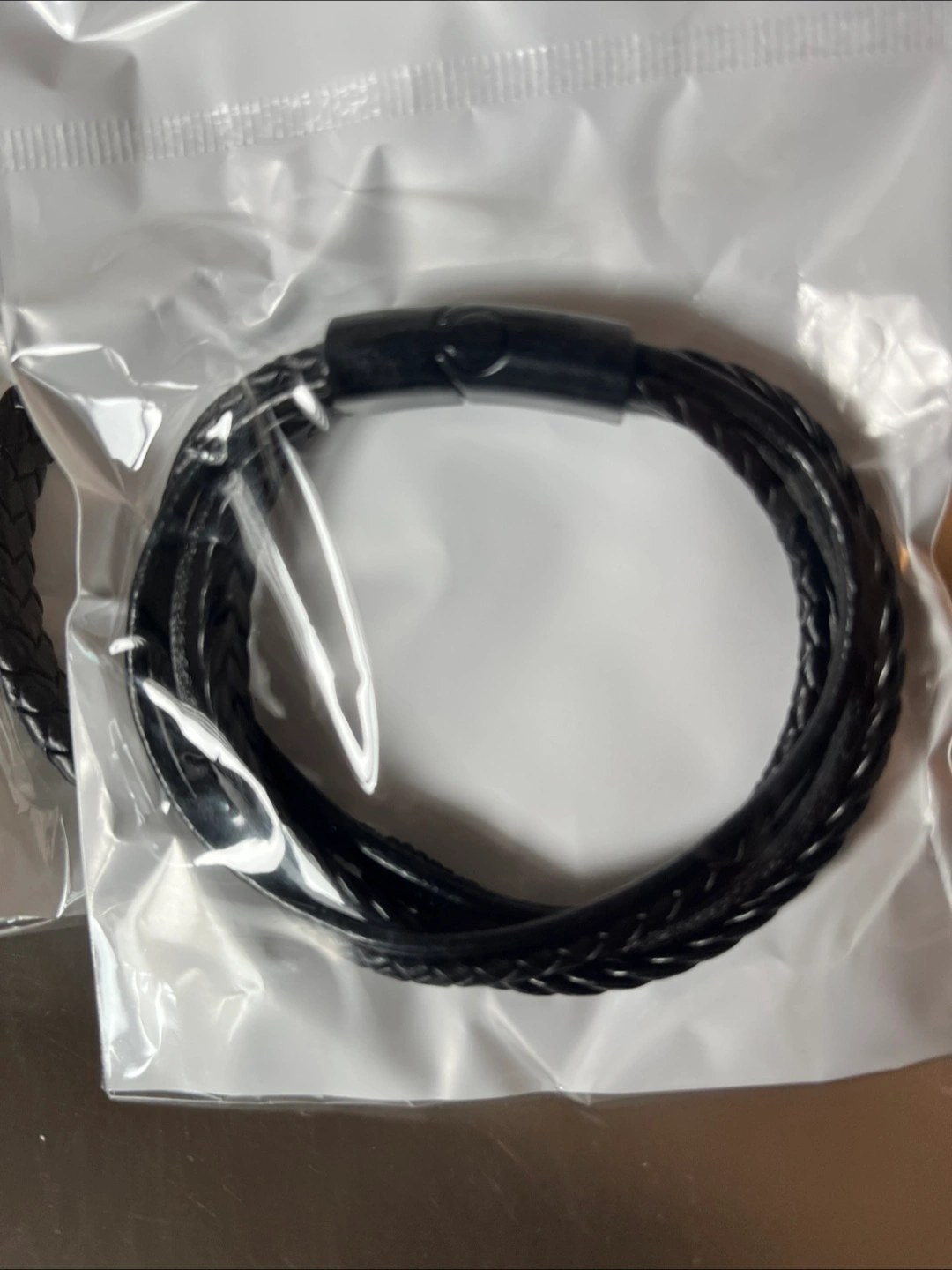 Selling a stylish men's bracelets. sleek black leather designs, $10.00 ea.