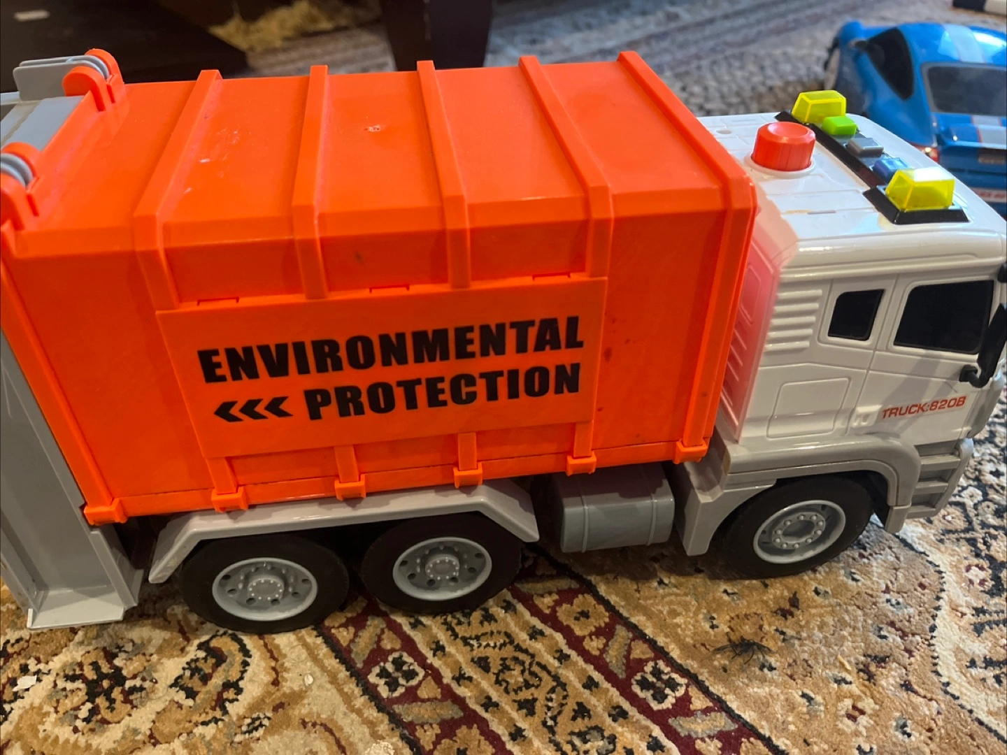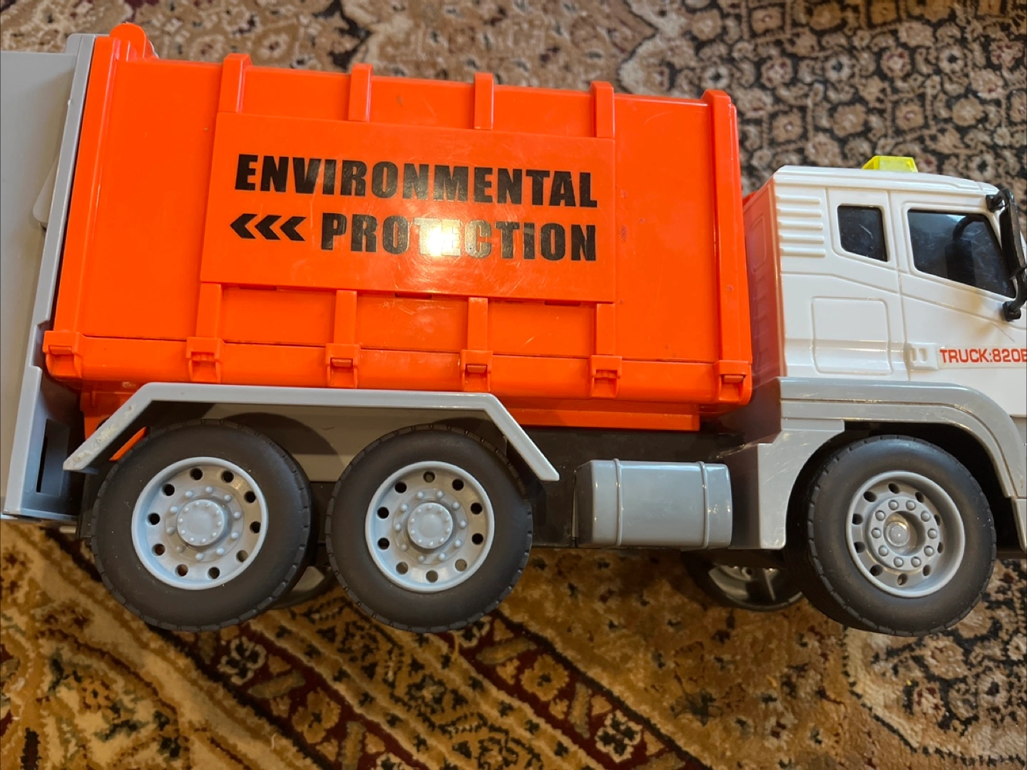 Selling a toy garbage truck with 'Environmental Protection' printed on the side! It looks like a real garbage truck, perfect for kids who love vehicles