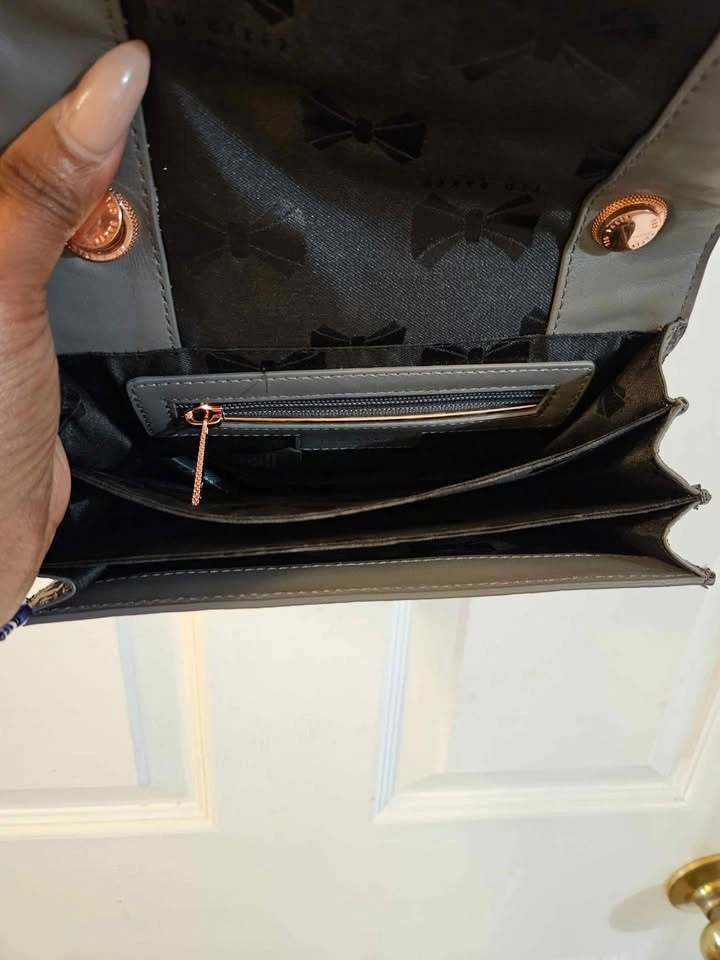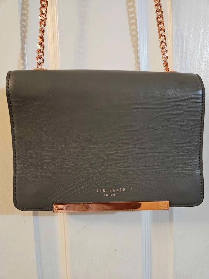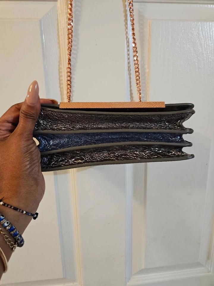 Grey crossbody/shoulder bag with rose gold-toned chain strap and hardware. Used twice for special events. Excellent condition.