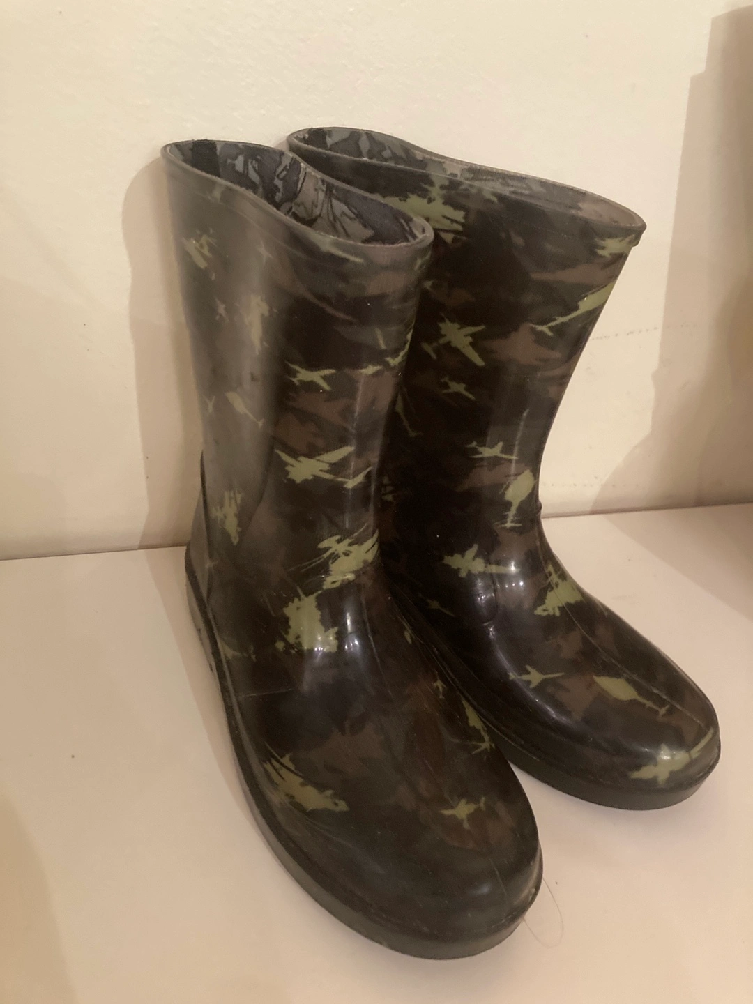 Here are a pair of camouflage rain boots. They're perfect for keeping your feet dry on those wet days. Size Youth 1 Pick up from Regent park - Corktown Area. Can be Scarborough (Weekend) or Dufferin Grove Park (Thu), can be nightingale. :)