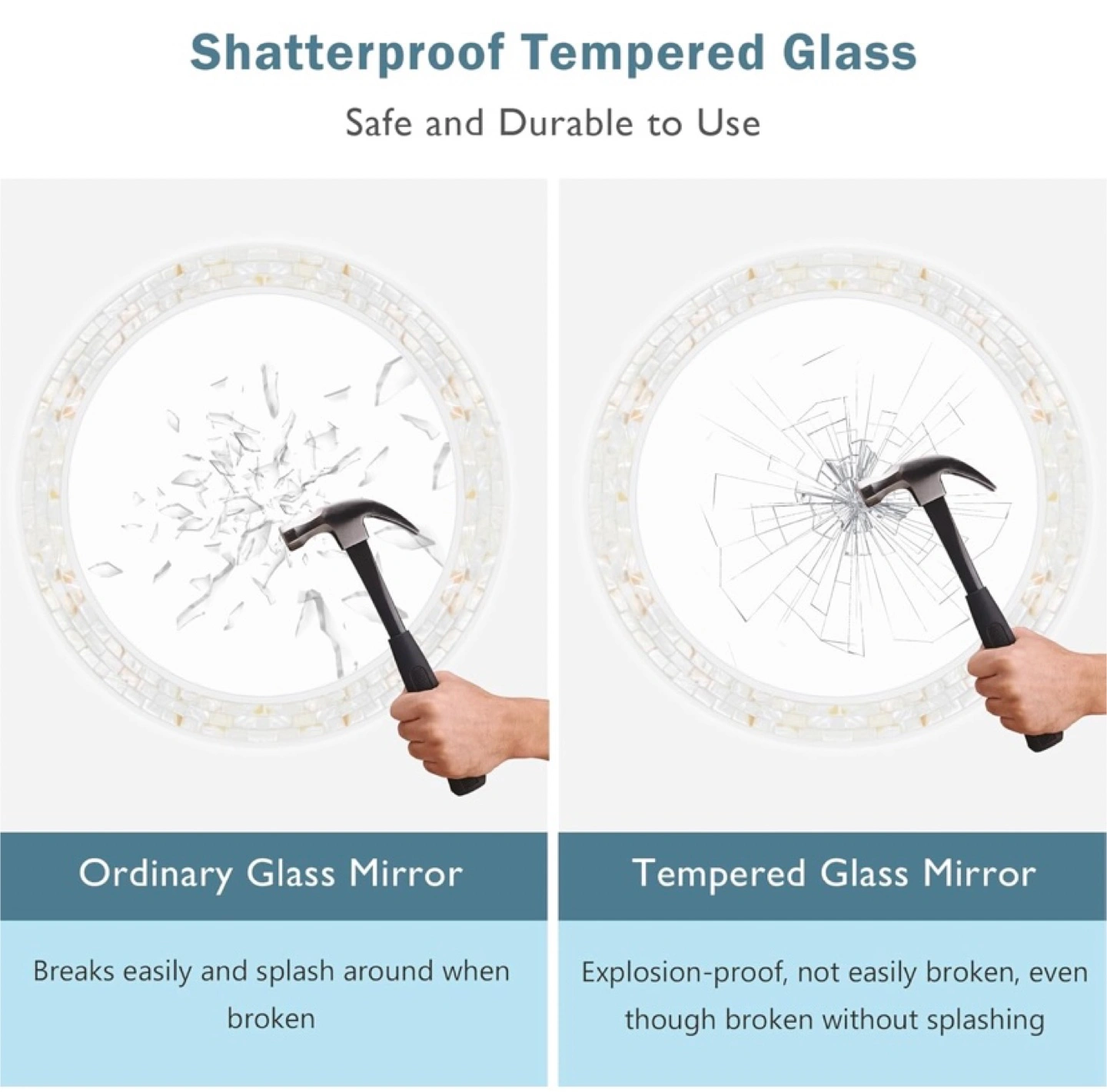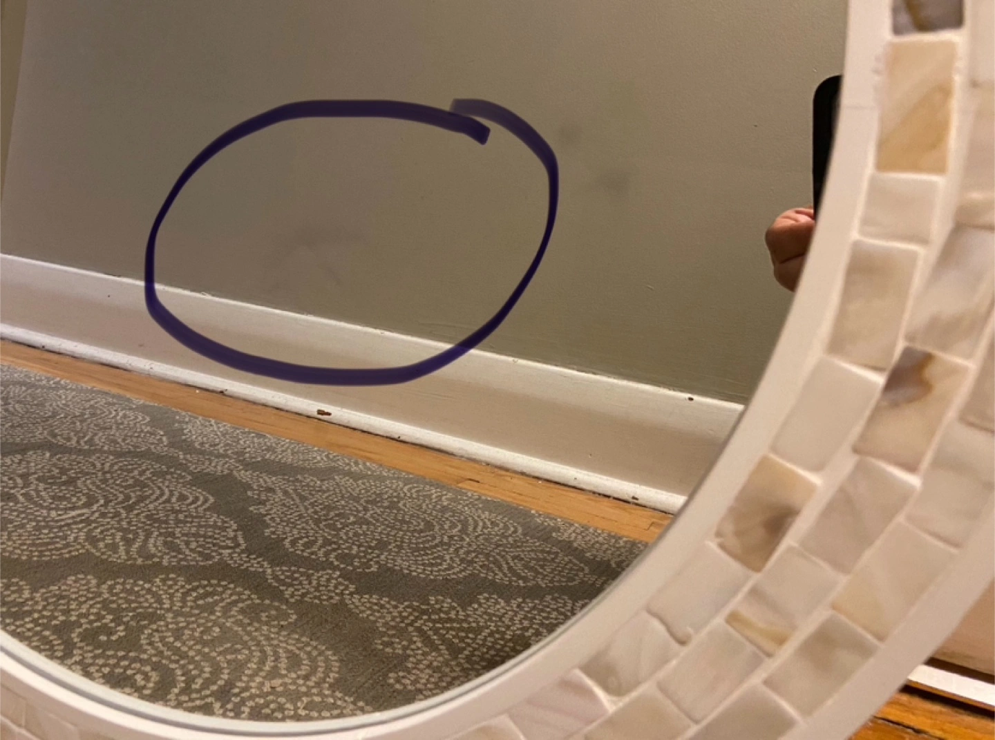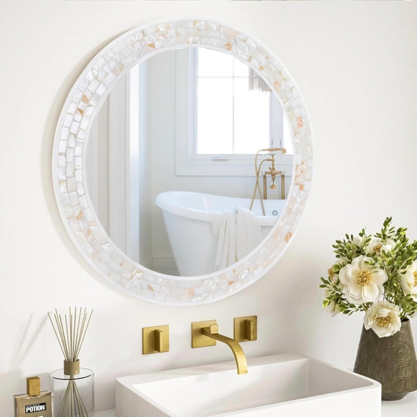 New 24” Circle Mosaic Natural Mother of Pearl and Wood Mirror Small haze spot in mirror. I tried to show in a picture but, hard to see. Have to look at just the right angle to notice it. Reflected in price. $60 (retail $166 plus tax) Pickup in Whitby