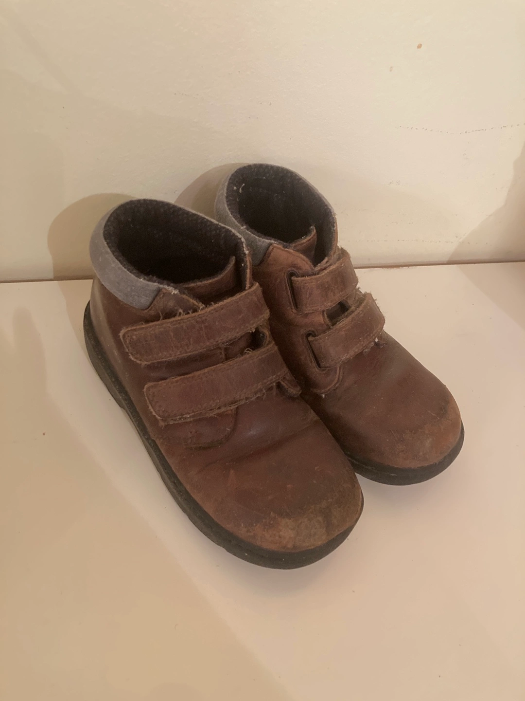 These are a pair of brown toddler leather boots in size 12M. They have a velcro closure and are in used condition. Pick up from Regent park - Corktown Area. Can be Scarborough (Weekend) or Dufferin Grove Park (Thu), can be nightingale. :)