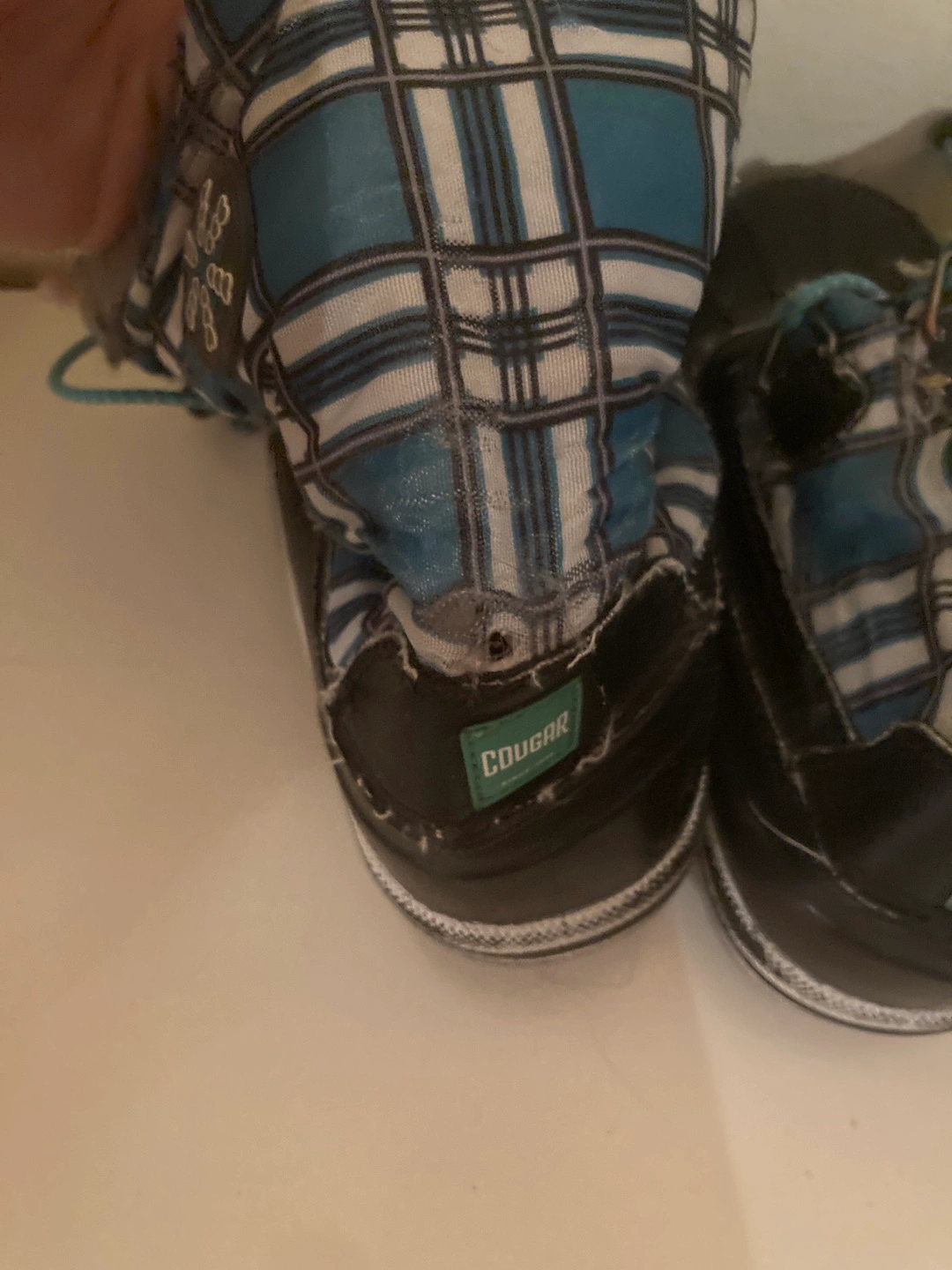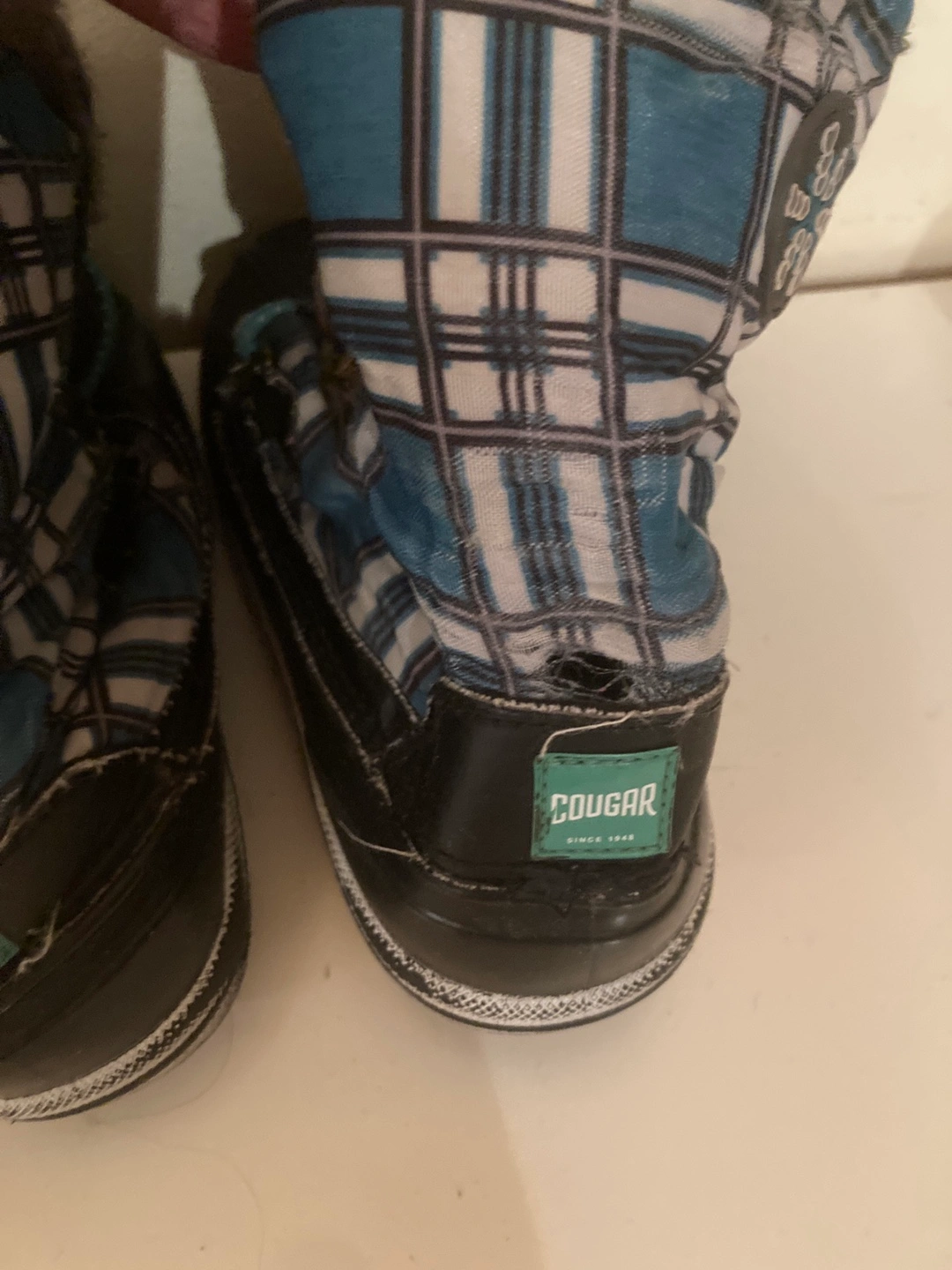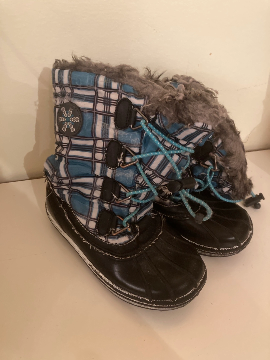These Cougar toddler winter boots size 11M. They feature a cute blue and white plaid design with faux fur trim. They're in used condition, has a hole each back side. Good for as a emergency pair. Pick up from Regent park - Corktown Area. Can be Scarborough (Weekend) or Dufferin Grove Park (Thu), can be nightingale. :)