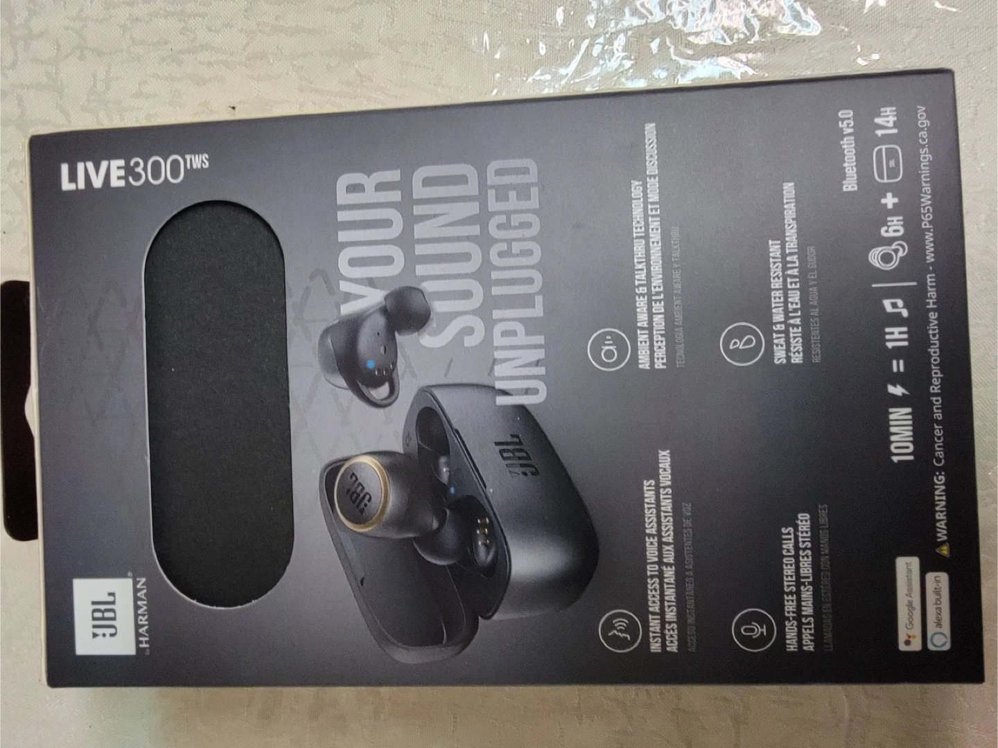 Selling a brand new pair of JBL Live 300TWS wireless earbuds! These are still in the original packaging and have never been used. Key features include: - Ambient Aware & TalkThru technology - Sweat & water resistant - Hands-free stereo calls - Instant access to voice assistants Enjoy your sound unplugged with these awesome earbuds!