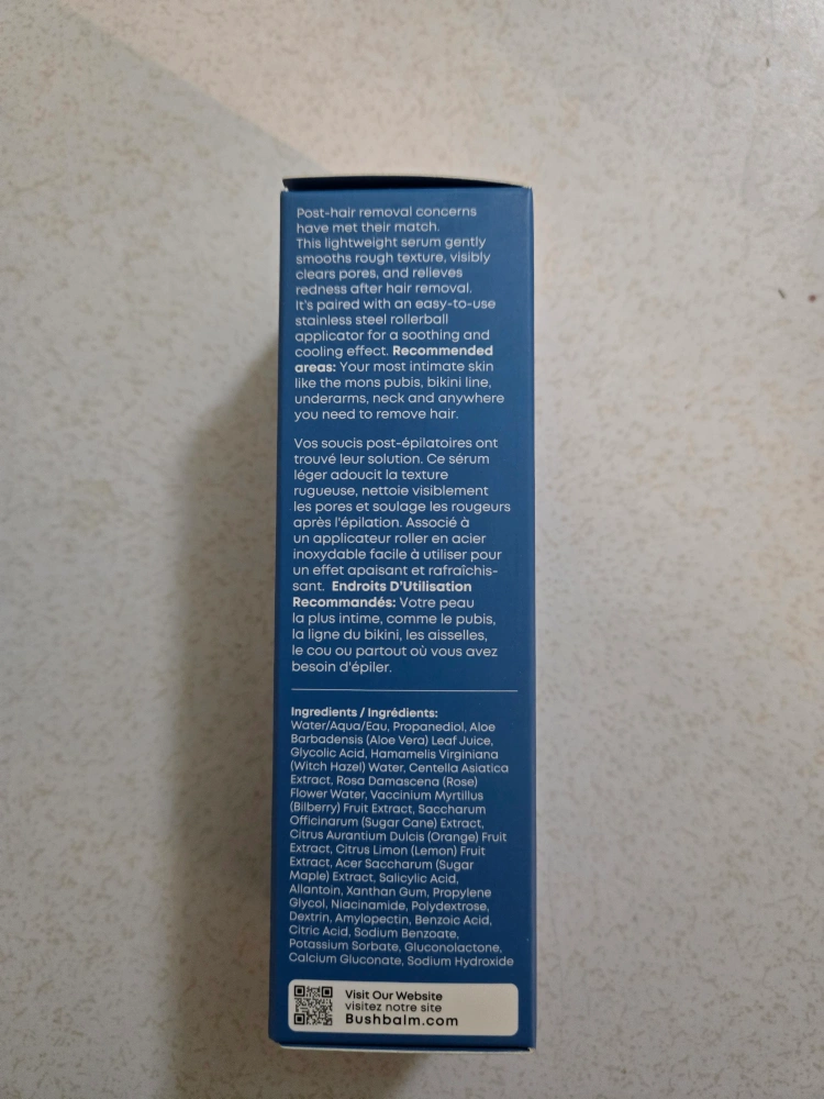 It's a chemical exfoliant for ingrown hairs and bumps. The serum comes in a 50ml / 1.69 fl oz bottle and features a cooling steel applicator. It's also vegan, pH balanced, fragrance-free, and alcohol-free! Retails for $26