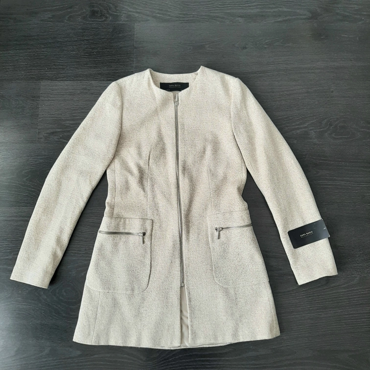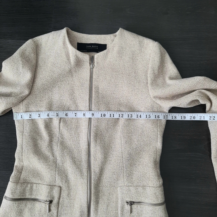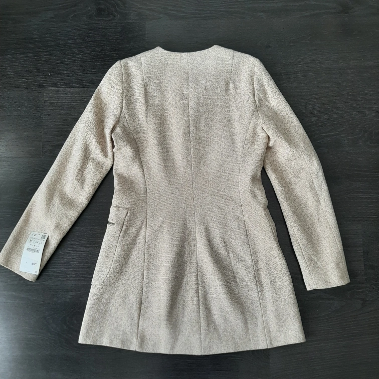 Selling a Zara Basic Collection blazer in a neutral colour. The size is M (Medium). It's in great condition and perfect for layering or wearing on its own!
