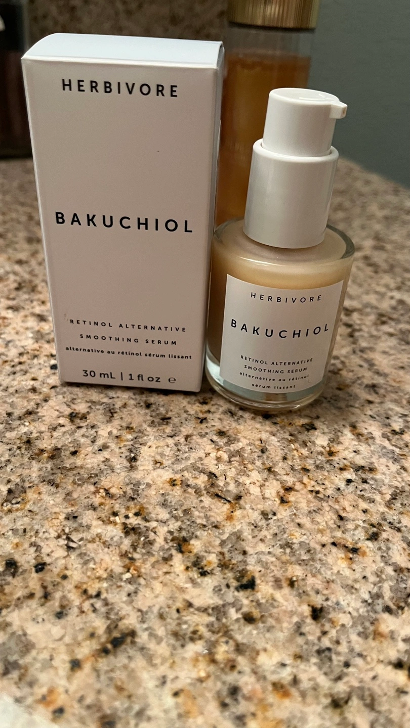 I'm selling a Herbivore Bakuchiol Retinol Alternative Smoothing Serum. It's a 30 mL (1 fl oz) bottle. The serum is a retinol alternative, so it's great for sensitive skin. The box is included! Used Twice
