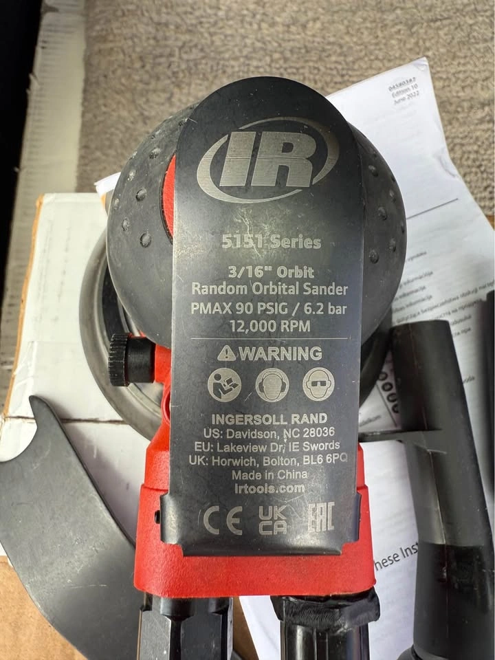 For Sale: Ingersoll Rand 5151-6 Random Orbital Sander 6-Inch, 3/16 Orbit, Vinyl Pad, 12,000 RPM, 0.3HP. Lightly used, in very good condition. Pickup in Vaughan or Woodbridge