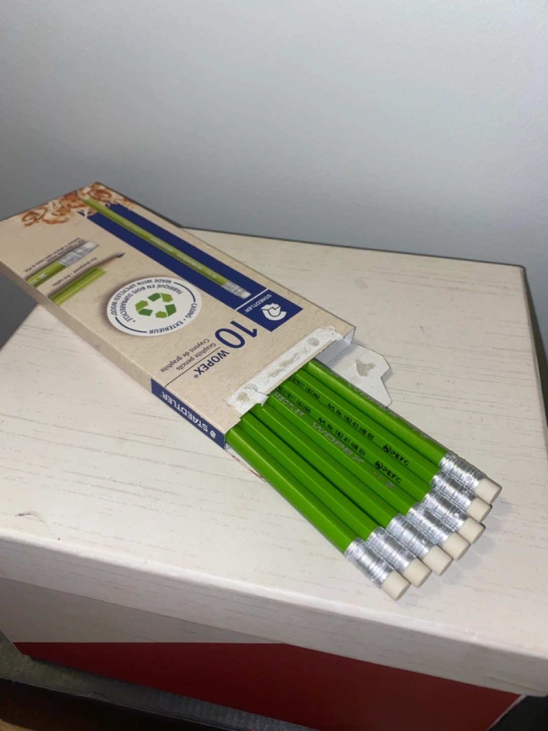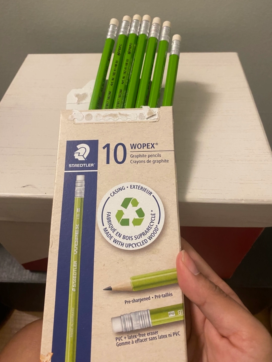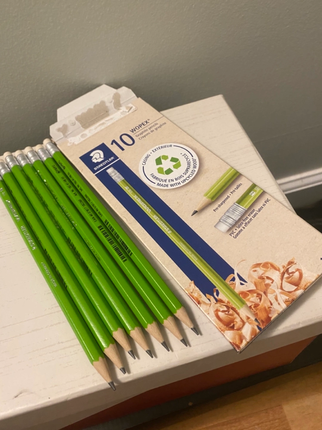 Selling 7 unused Staedtler Wopex graphite pencils. These pencils are made with upcycled wood and come pre-sharpened. They also feature a PVC and latex-free eraser. Perfect for school, work, or art projects!